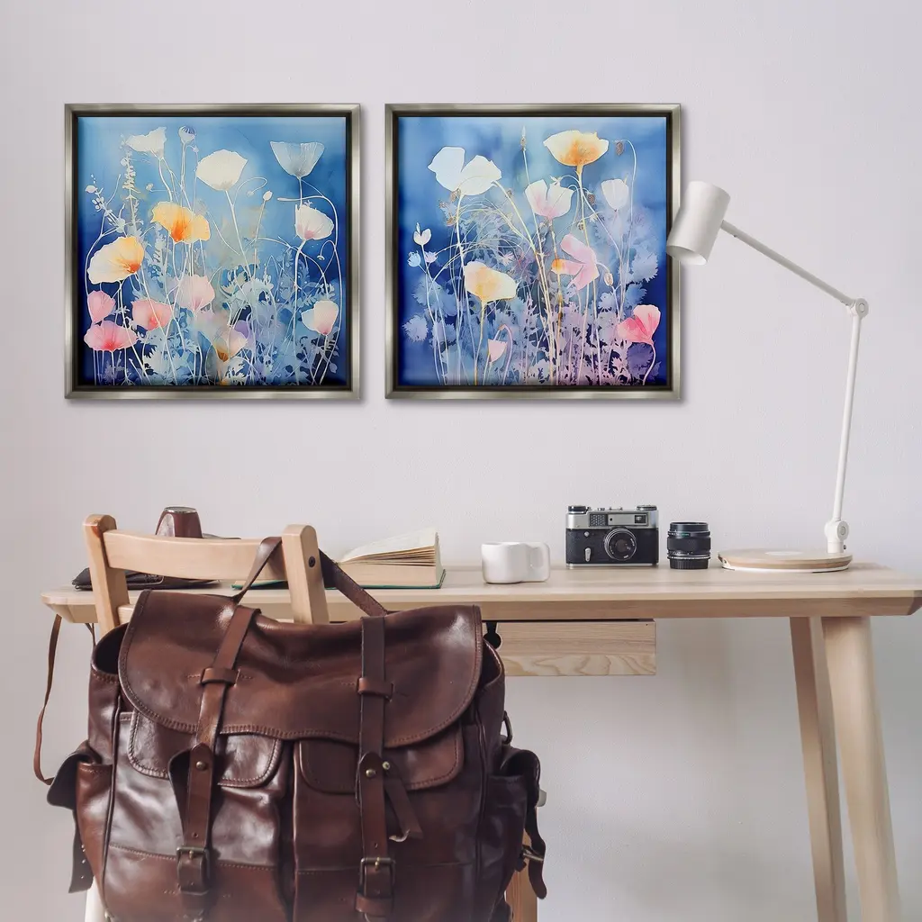 Elevate your home or office to the next level with Stupell Framed Floating Canvas Wall Art. Our premium hand-stretched canvas is mounted securely into a sturdy lightweight frame. The museum-style gap between the wrapped canvas and the box frame gives the illusion of floating artwork. Stupell Wall Art is made in the USA.Features: Dimensions: 2 Piece Set, Each Frame is 18 x 1.7 x 18Two Piece Floating Frame Canvas Products are available as 18"x18" or 25"x25" Panels. All Floating Frame Canvas Products have a 1.7" Depth.Wall Art is Ready to Hang with Hardware Free Hanging. No Installation required. For Easy Set Up Lean or Layer Artwork on Shelf or Against Wall. Artwork is Permently Fixed into the Frame.Our elevated 1.7" Thick Floating Frame is the perfect complement to our canvas style Wall Art. We use only the highest quality inks in house with industry leading printing solutions. Canvas is hand stretched over a durable wood foundation and then mounted securly into a Modern Box Frame. Made in the USA.Artwork Relates To: Floral, Pattern, Flower, Petal, Plant, Botanical, Bouquet, Modern, AbstractDesign by Irena Orlov