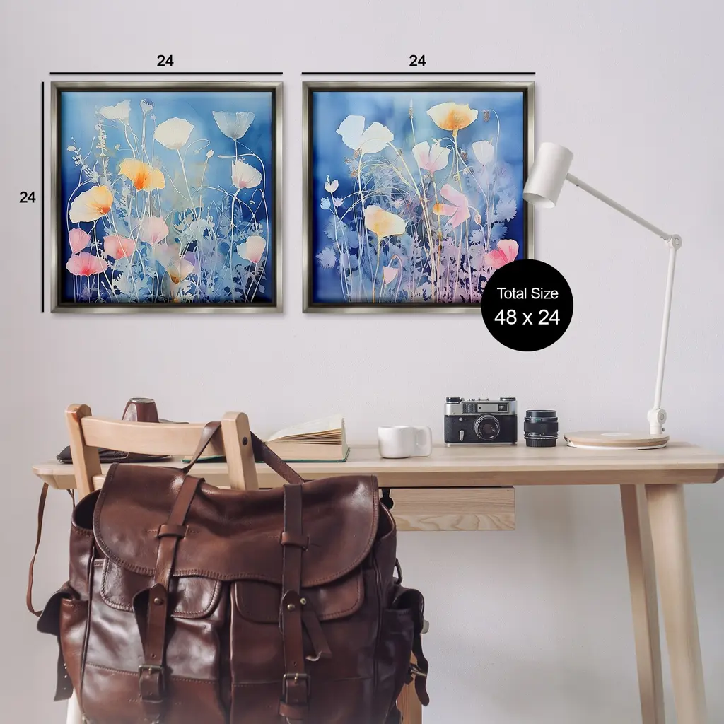 Stupell Abstract Poppies On Blue Framed Floater Canvas Wall Art Design By Irena Orlov (Set Of 2) - 25 X 25 - Grey