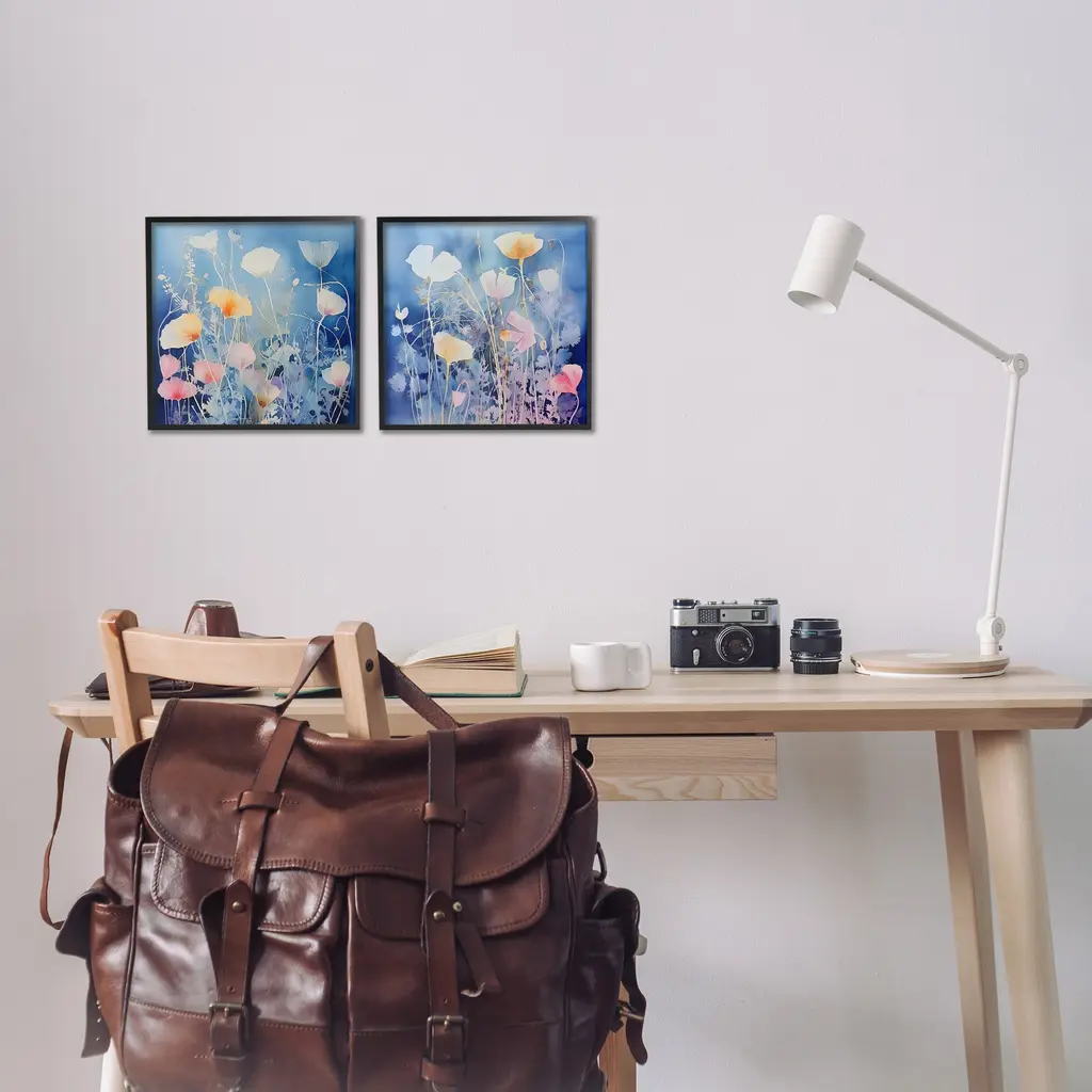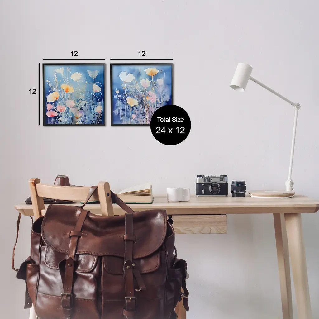 Stupell Abstract Poppies On Blue Framed Giclee Art Design By Irena Orlov (Set Of 2) - 12 X 12 - Black