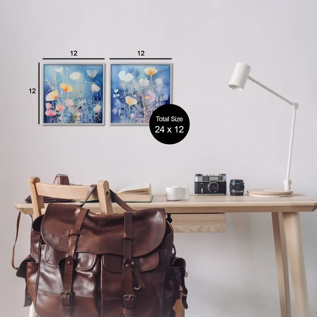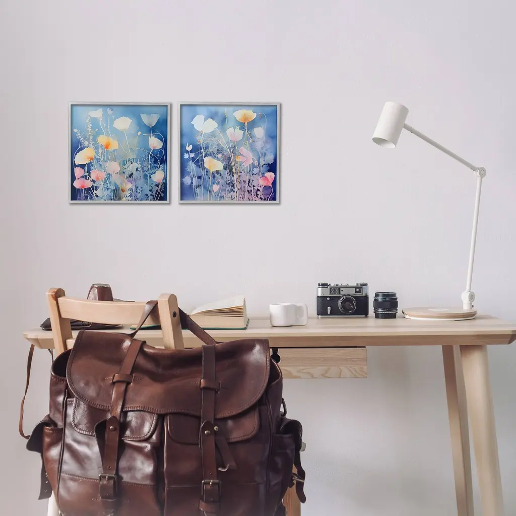 Stupell Abstract Poppies On Blue Framed Giclee Art Design By Irena Orlov (Set Of 2) - 12 X 12 - Grey