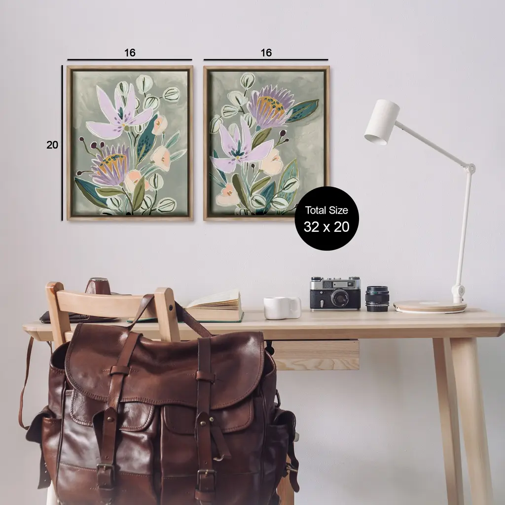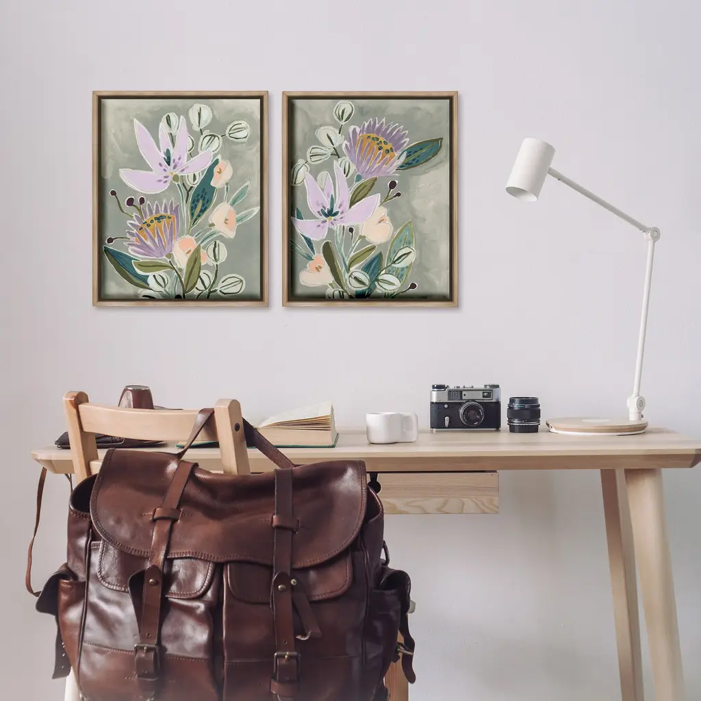 Elevate your home or office to the next level with Stupell Framed Floating Canvas Wall Art. Our premium hand-stretched canvas is mounted securely into a sturdy lightweight frame. The museum-style gap between the wrapped canvas and the box frame gives the illusion of floating artwork. Stupell Wall Art is made in the USA.Features: Dimensions: 2 Piece Set, Each Frame is 17 x 1.7 x 21Two Piece Floater Framed Canvas are available as 17x21 or 25x31 Panels. All Floater Frame Products have a 1.7" Depth.Wall Art is Ready to Hang with Hardware Free Hanging. No Installation required. For Easy Set Up Lean or Layer Artwork on Shelf or Against Wall. Artwork is Permently Fixed into the Frame.Our elevated 1.7" Thick Floating Frame is the perfect complement to our canvas style Wall Art. We use only the highest quality inks in house with industry leading printing solutions. Canvas is hand stretched over a durable wood foundation and then mounted securly into a Modern Box Frame. Made in the USA.Artwork Relates To: Floral, Flower, Pattern, Blossom, Abstract, ModernDesign by June Erica Vess