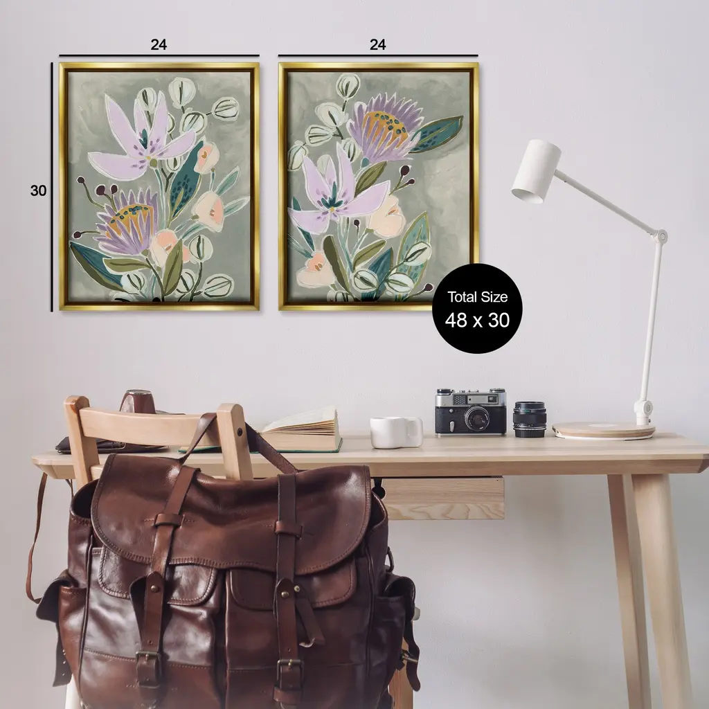 Elevate your home or office to the next level with Stupell Framed Floating Canvas Wall Art. Our premium hand-stretched canvas is mounted securely into a sturdy lightweight frame. The museum-style gap between the wrapped canvas and the box frame gives the illusion of floating artwork. Stupell Wall Art is made in the USA.Features: Dimensions: 2 Piece Set, Each Frame is 17 x 1.7 x 21Two Piece Floater Framed Canvas are available as 17x21 or 25x31 Panels. All Floater Frame Products have a 1.7" Depth.Wall Art is Ready to Hang with Hardware Free Hanging. No Installation required. For Easy Set Up Lean or Layer Artwork on Shelf or Against Wall. Artwork is Permently Fixed into the Frame.Our elevated 1.7" Thick Floating Frame is the perfect complement to our canvas style Wall Art. We use only the highest quality inks in house with industry leading printing solutions. Canvas is hand stretched over a durable wood foundation and then mounted securly into a Modern Box Frame. Made in the USA.Artwork Relates To: Floral, Flower, Pattern, Blossom, Abstract, ModernDesign by June Erica Vess
