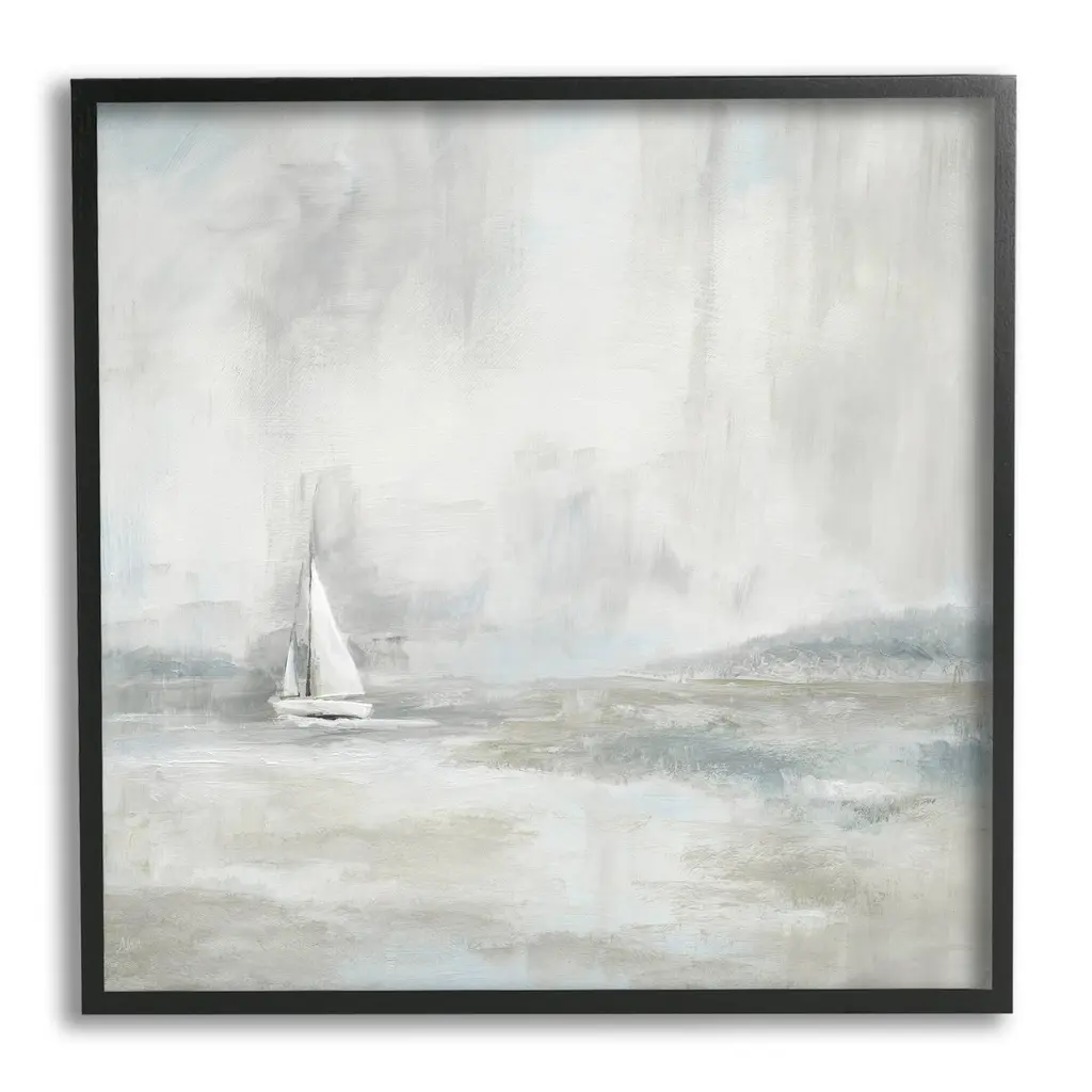Stupell Abstract Sailboat Drifting Ocean Waves Beige Neutrals Framed Wall Art - White - 17 X 17 - Grey