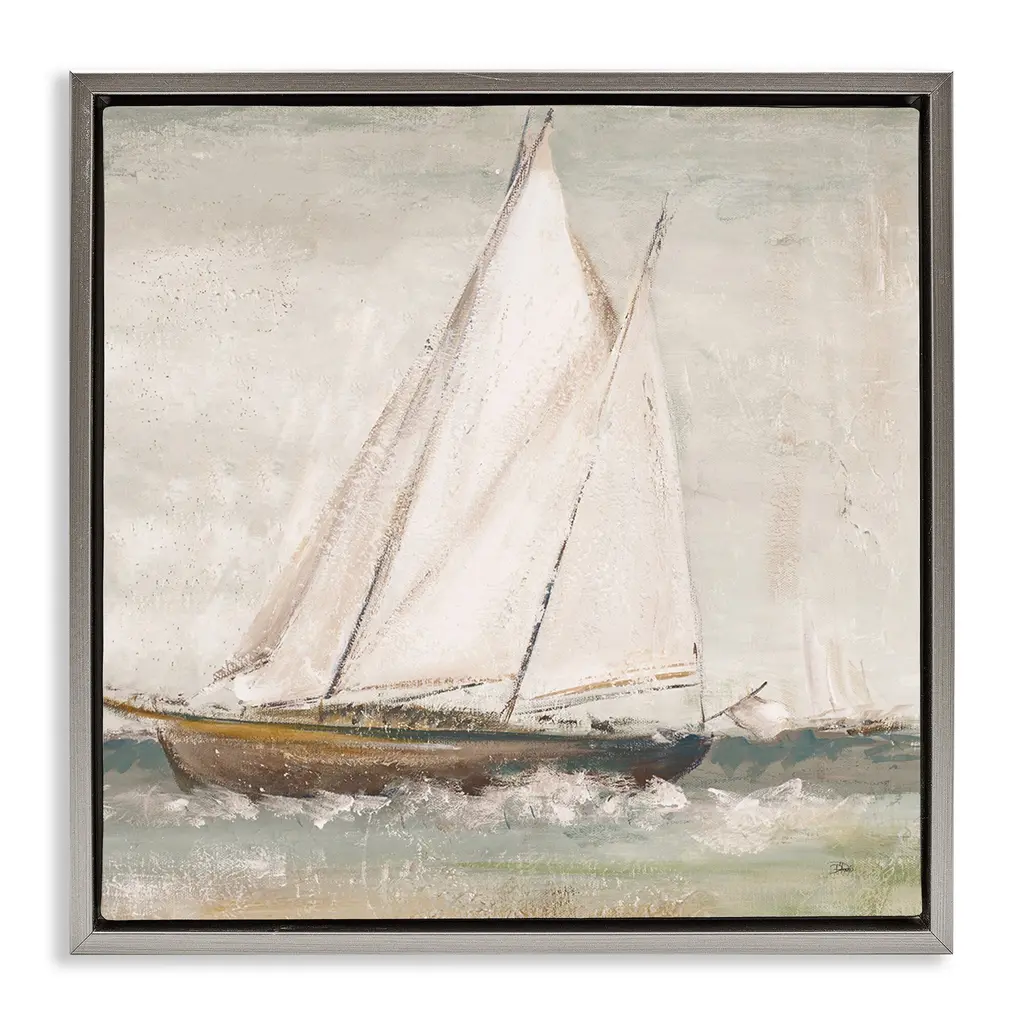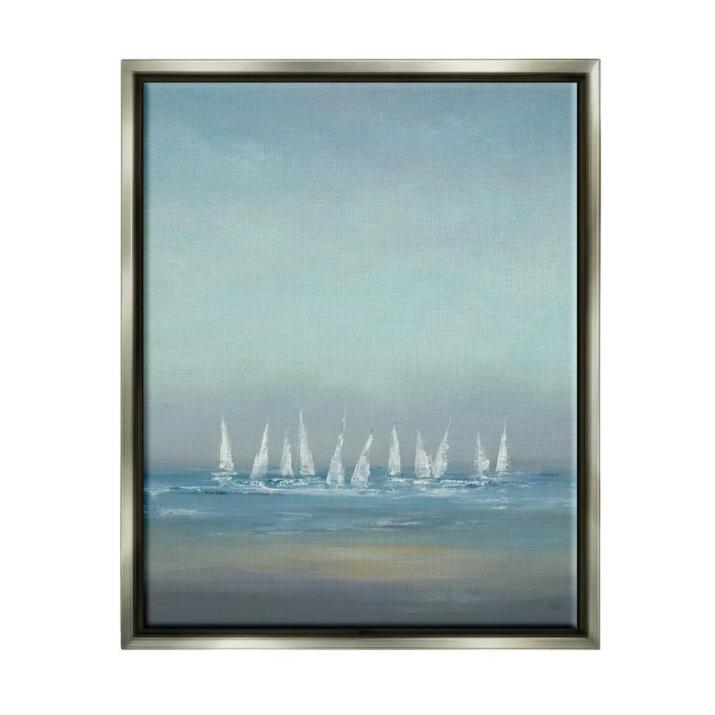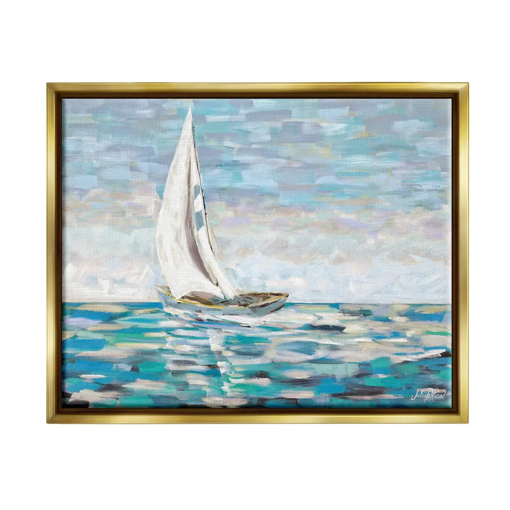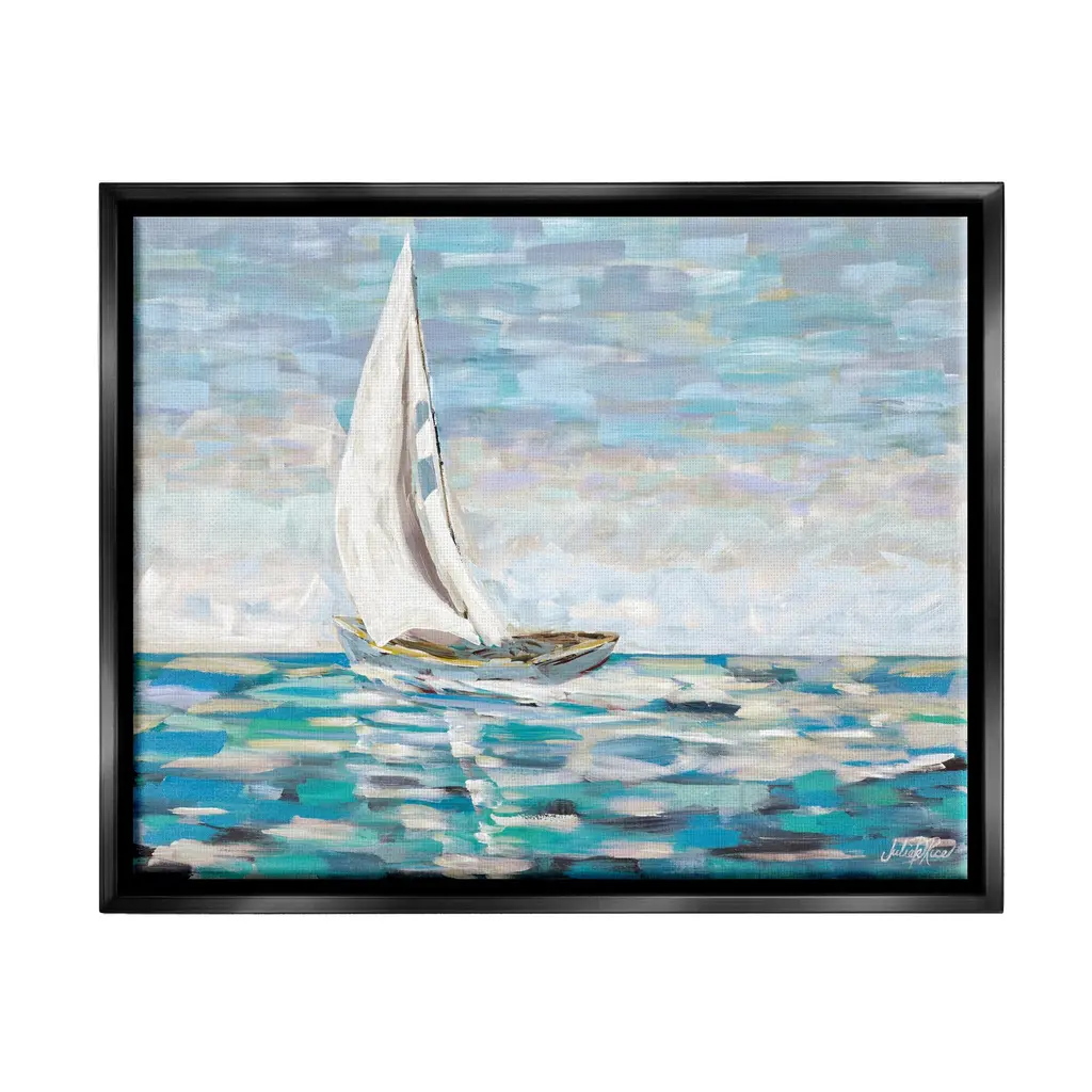 Elevate your home or office to the next level with Stupell Framed Floating Canvas Wall Art. Our premium hand-stretched canvas is mounted securely into a sturdy lightweight frame. The museum-style gap between the wrapped canvas and the box frame gives the illusion of floating artwork. Stupell Wall Art is made in the USA.Features: Dimensions: 21 x 1.7 x 17 Frame, 20 x 1.5 x 16 Canvas ArtFloating Frame Sizes Include Standard: 21 x 1.7 x 17 Oversized: 31 x 1.7 x 25Wall Art is Ready to Hang with Hardware Free Hanging. No installation required. For Easy Set Up Lean or Layer Artwork on Shelf or Against Wall.Our elevated 1.7" Thick Floating Frame is the perfect complement to our canvas style Wall Art. We use only the highest quality inks in house with industry leading printing solutions. Canvas is hand stretched over a durable wood foundation and then mounted securly into a Modern Box Frame. Made in the USA.Artwork Relates To: Boat, Sailboat, Transportation, Vehicle, Painting, Watercraft, Dinghy, Water, Ocean, SeaDesign by Julie DeRice