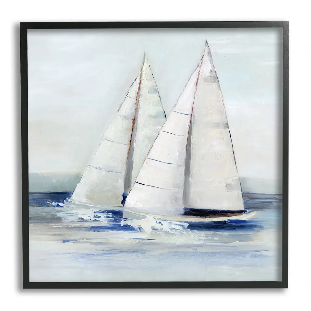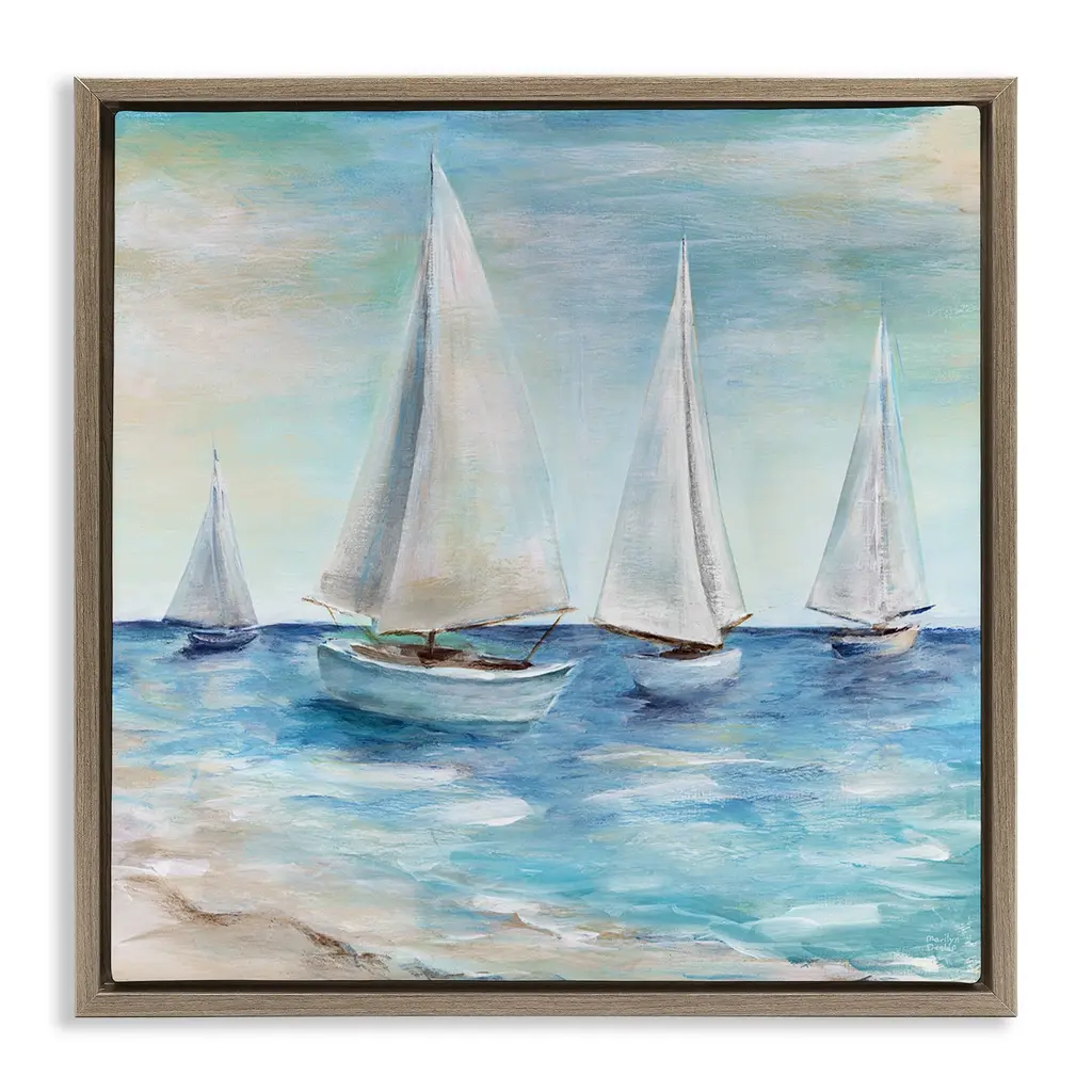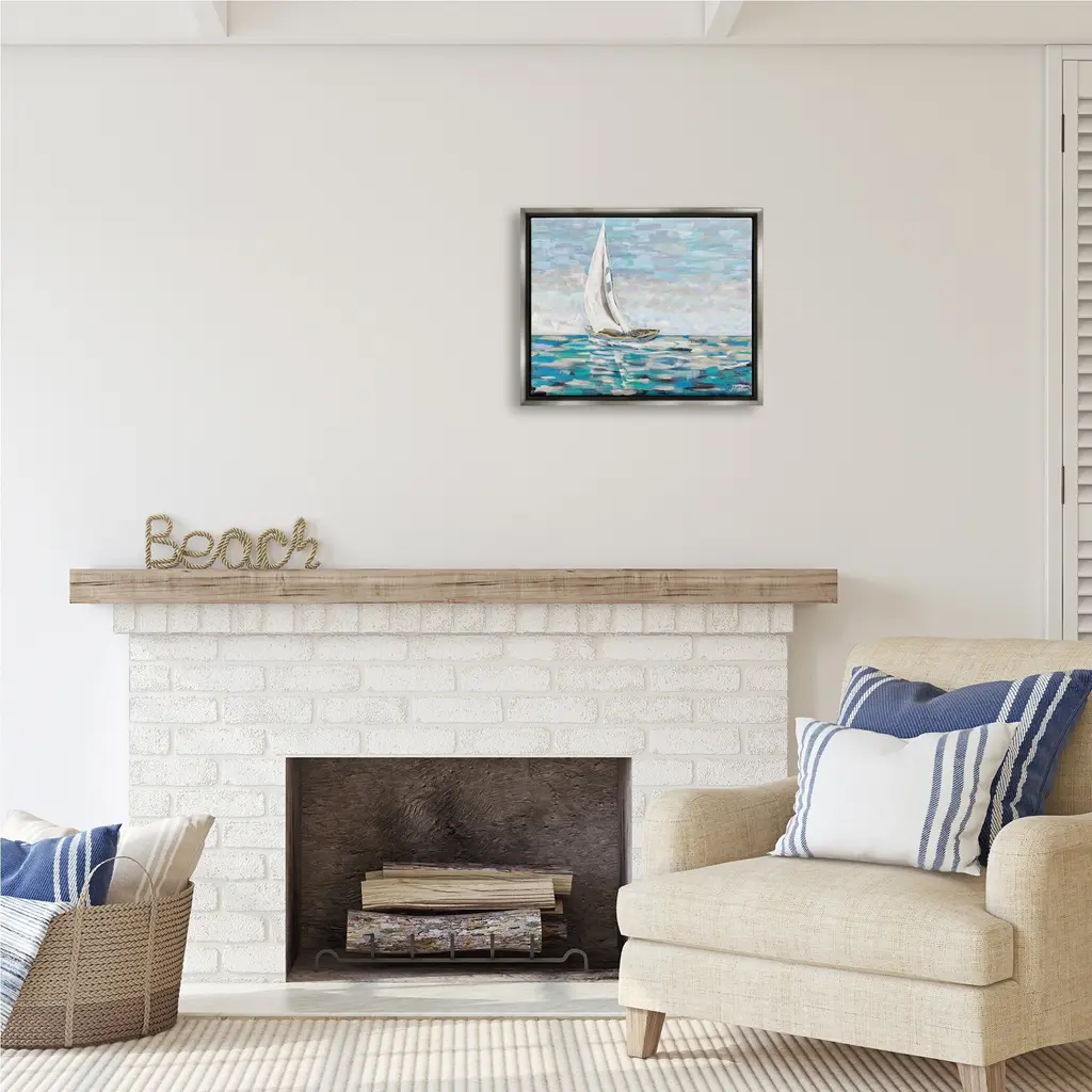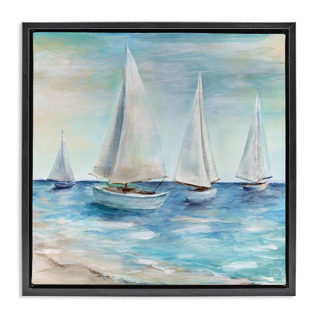 Elevate your home or office to the next level with Stupell Framed Floating Canvas Wall Art. Our premium hand-stretched canvas is mounted securely into a sturdy lightweight frame. The museum-style gap between the wrapped canvas and the box frame gives the illusion of floating artwork. Stupell Wall Art is made in the USA.Features: Dimensions: 21 x 1.7 x 17 Frame, 20 x 1.5 x 16 Canvas ArtFloating Frame Sizes Include Standard: 21 x 1.7 x 17 Oversized: 31 x 1.7 x 25Wall Art is Ready to Hang with Hardware Free Hanging. No installation required. For Easy Set Up Lean or Layer Artwork on Shelf or Against Wall.Our elevated 1.7" Thick Floating Frame is the perfect complement to our canvas style Wall Art. We use only the highest quality inks in house with industry leading printing solutions. Canvas is hand stretched over a durable wood foundation and then mounted securly into a Modern Box Frame. Made in the USA.Artwork Relates To: Boat, Sailboat, Transportation, Vehicle, Painting, Watercraft, Dinghy, Water, Ocean, SeaDesign by Julie DeRice