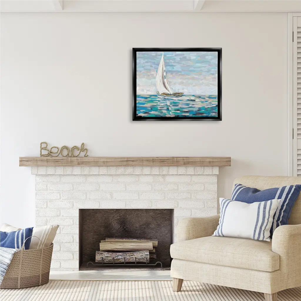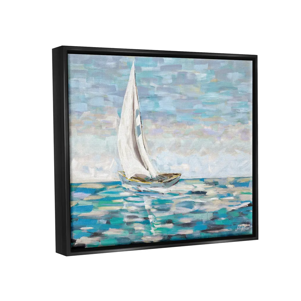 Elevate your home or office to the next level with Stupell Framed Floating Canvas Wall Art. Our premium hand-stretched canvas is mounted securely into a sturdy lightweight frame. The museum-style gap between the wrapped canvas and the box frame gives the illusion of floating artwork. Stupell Wall Art is made in the USA.Features: Dimensions: 21 x 1.7 x 17 Frame, 20 x 1.5 x 16 Canvas ArtFloating Frame Sizes Include Standard: 21 x 1.7 x 17 Oversized: 31 x 1.7 x 25Wall Art is Ready to Hang with Hardware Free Hanging. No installation required. For Easy Set Up Lean or Layer Artwork on Shelf or Against Wall.Our elevated 1.7" Thick Floating Frame is the perfect complement to our canvas style Wall Art. We use only the highest quality inks in house with industry leading printing solutions. Canvas is hand stretched over a durable wood foundation and then mounted securly into a Modern Box Frame. Made in the USA.Artwork Relates To: Boat, Sailboat, Transportation, Vehicle, Painting, Watercraft, Dinghy, Water, Ocean, SeaDesign by Julie DeRice