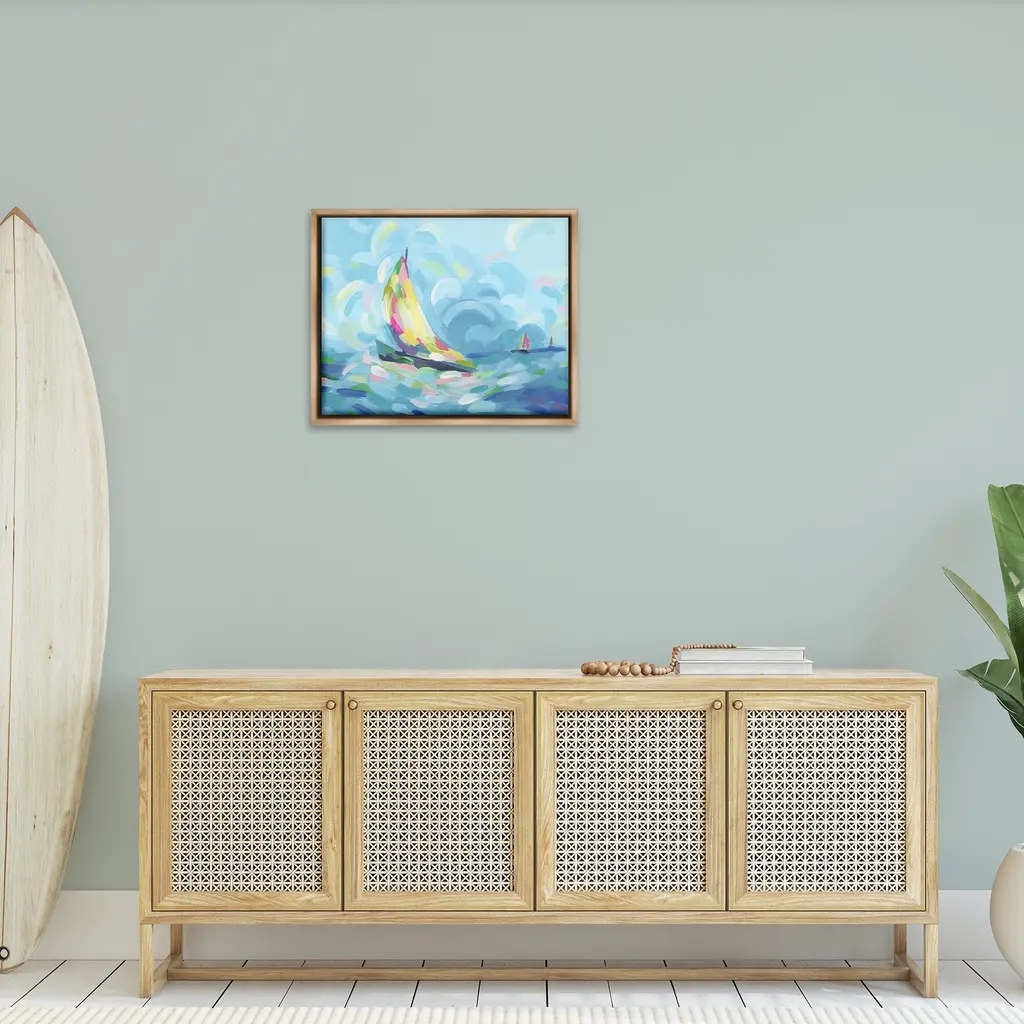 Elevate your home or office to the next level with Stupell Framed Floating Canvas Wall Art. Our premium hand-stretched canvas is mounted securely into a sturdy lightweight frame. The museum-style gap between the wrapped canvas and the box frame gives the illusion of floating artwork. Stupell Wall Art is made in the USA.Features: Dimensions: 21 x 1.7 x 17 Frame, 20 x 1.5 x 16 Canvas ArtFloating Frame Canvas Products are available in sizes 21"x17" and 31"x25". All Floating Frame Canvas Products have a 1.7" Depth.Wall Art is Ready to Hang with Hardware Free Hanging. No Installation required. For Easy Set Up Lean or Layer Artwork on Shelf or Against Wall. Artwork is Permently Fixed into the Frame.Our elevated 1.7" Thick Floating Frame is the perfect complement to our canvas style Wall Art. We use only the highest quality inks in house with industry leading printing solutions. Canvas is hand stretched over a durable wood foundation and then mounted securly into a Modern Box Frame. Made in the USA.Artwork Relates To: Boat, Sailboat, Watercraft, Nautical, Maritime, Abstract, ModernDesign by June Erica Vess