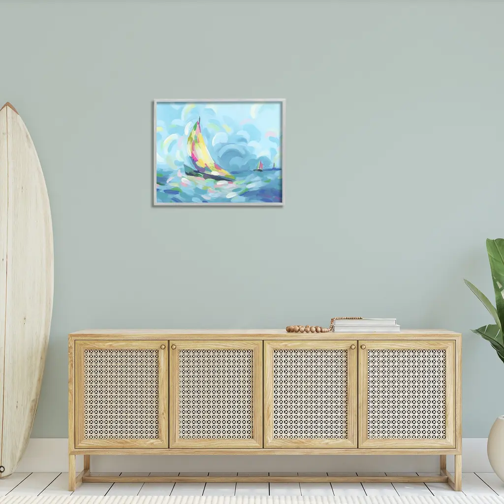 Add dimension to any room with our textured Framed Giclee Artwork. Our framed artwork is securely mounted into a 1.5-inch thick wood grain frame and ready to hang. Frames are available in three alluring styles: black, gray farmhouse and white. In addition, you should check out our oversized options if you want a statement piece. Stupell Wall Art is made in the USA.Features: Dimensions: 14 x 1.5 x 11 FramedFramed Giclee Products are available in the sizes 14"x11", 20"x16" or 30"x24". All Framed Giclee Products have a 1.5" Depth. Wall Art is Ready to Hang with Hardware Free Hanging. No installation required. For Easy Set Up Lean or Layer Artwork on Shelf or Against Wall.Our giclée prints are carefully mounted on a durable MDF backing, and then perfectly finished in a 1.5 inch thick woodgrain frame. Mounted frame colors include black, gray farmhouse and white. Made In USA.Artwork Relates To: Boat, Sailboat, Watercraft, Nautical, Maritime, Abstract, ModernDesign by June Erica Vess