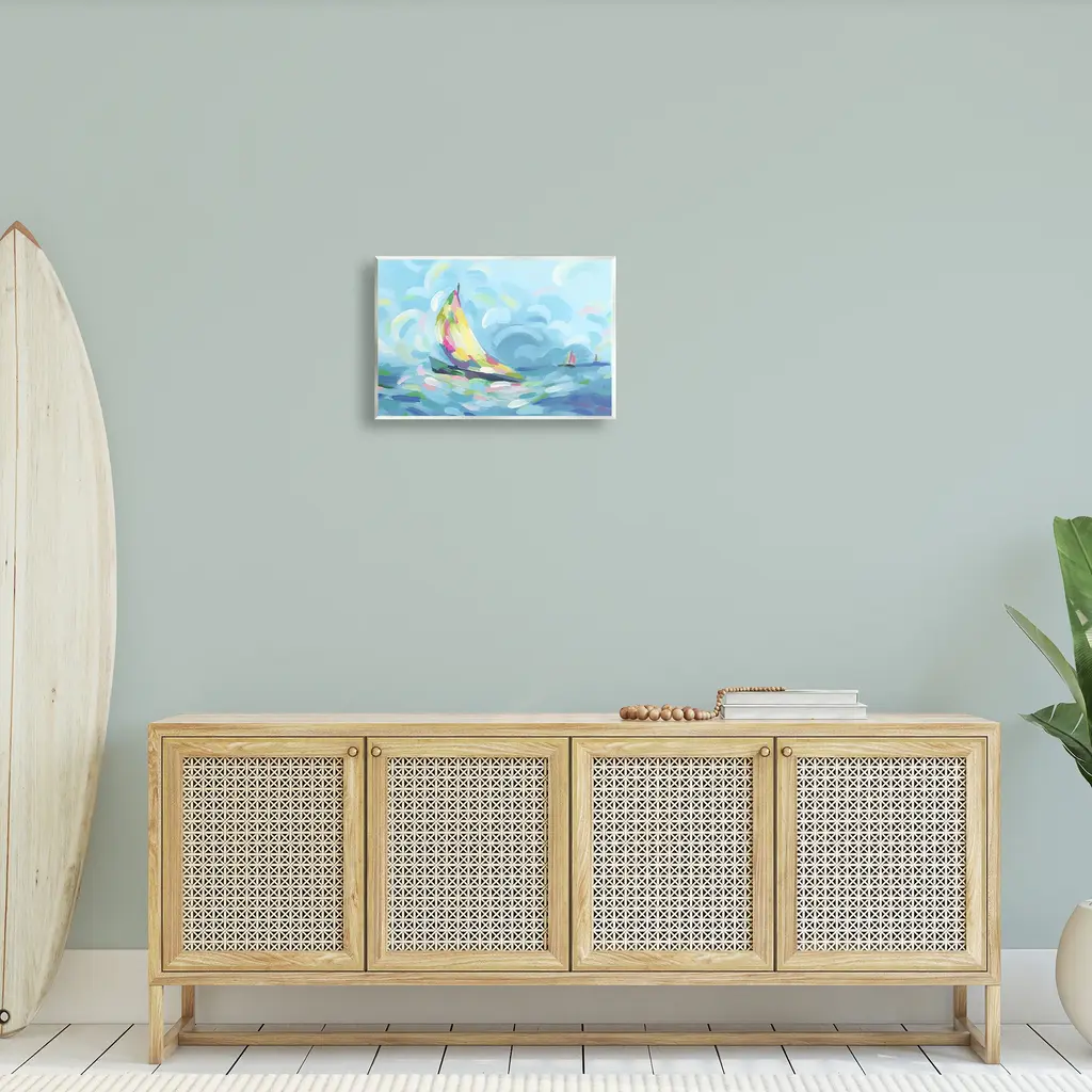 Our wall plaques start as high-quality lithograph prints mounted on durable 0.5-inch thick MDF wood. Each piece is hand finished and comes with a fresh layer of white foil on the sides to give it a crisp, clean look. Plaques arrive ready to hang without installation and come with removable plastic corners to keep them from damage in transit. Stupell Wall Art is made in the USA.Features: Dimensions: 15 x 0.5 x 10 InchesWall Plaque Product Sizes Include 15"x10" and 19"x13". All wall plaque products have a 0.5" Depth. Wall Art is Ready to Hang with Hardware Free Hanging. No installation required. For Easy Set Up Lean or Layer Artwork on Shelf or Against Wall.All of our wall plaques start off as high quality lithograph prints that are then mounted on durable 0.5 inch thick MDF wood. Each piece is hand finished and comes with a fresh layer of foil on the sides to give it a crisp clean look. Made In USA.Artwork Relates To: Boat, Sailboat, Watercraft, Nautical, Maritime, Abstract, ModernDesign by June Erica Vess
