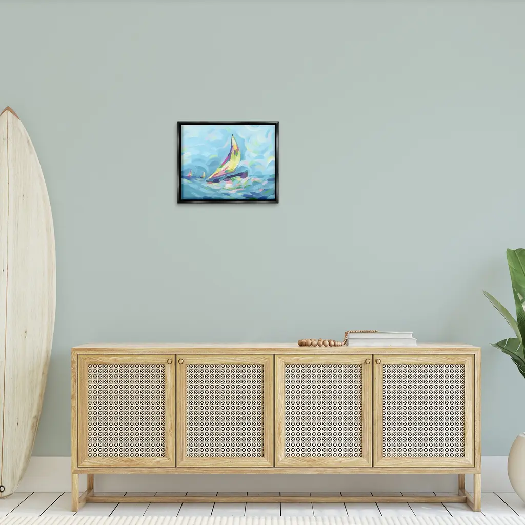 Elevate your home or office to the next level with Stupell Framed Floating Canvas Wall Art. Our premium hand-stretched canvas is mounted securely into a sturdy lightweight frame. The museum-style gap between the wrapped canvas and the box frame gives the illusion of floating artwork. Stupell Wall Art is made in the USA.Features: Dimensions: 21 x 1.7 x 17 Frame, 20 x 1.5 x 16 Canvas ArtFloating Frame Canvas Products are available in sizes 21"x17" and 31"x25". All Floating Frame Canvas Products have a 1.7" Depth.Wall Art is Ready to Hang with Hardware Free Hanging. No Installation required. For Easy Set Up Lean or Layer Artwork on Shelf or Against Wall. Artwork is Permently Fixed into the Frame.Our elevated 1.7" Thick Floating Frame is the perfect complement to our canvas style Wall Art. We use only the highest quality inks in house with industry leading printing solutions. Canvas is hand stretched over a durable wood foundation and then mounted securly into a Modern Box Frame. Made in the USA.Artwork Relates To: Boat, Sailboat, Watercraft, Nautical, Maritime, Abstract, ModernDesign by June Erica Vess