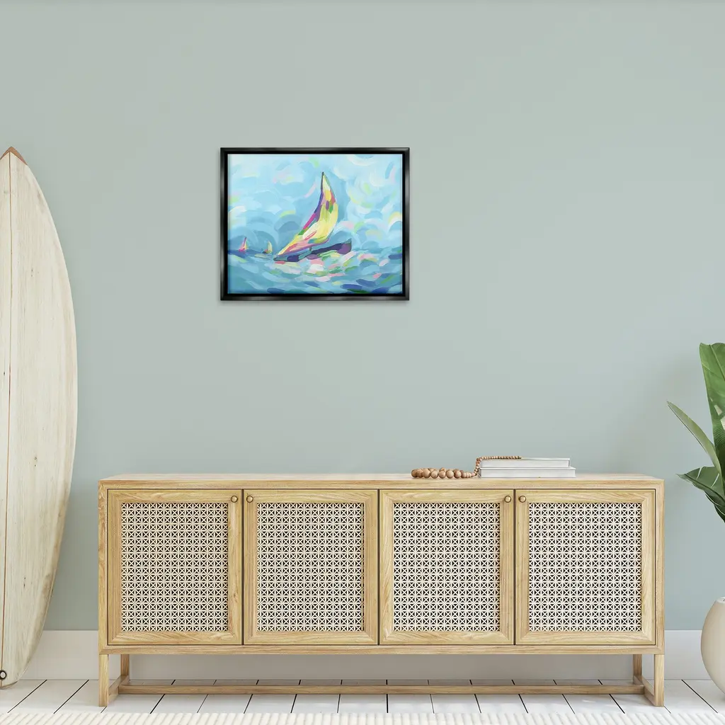 Elevate your home or office to the next level with Stupell Framed Floating Canvas Wall Art. Our premium hand-stretched canvas is mounted securely into a sturdy lightweight frame. The museum-style gap between the wrapped canvas and the box frame gives the illusion of floating artwork. Stupell Wall Art is made in the USA.Features: Dimensions: 21 x 1.7 x 17 Frame, 20 x 1.5 x 16 Canvas ArtFloating Frame Canvas Products are available in sizes 21"x17" and 31"x25". All Floating Frame Canvas Products have a 1.7" Depth.Wall Art is Ready to Hang with Hardware Free Hanging. No Installation required. For Easy Set Up Lean or Layer Artwork on Shelf or Against Wall. Artwork is Permently Fixed into the Frame.Our elevated 1.7" Thick Floating Frame is the perfect complement to our canvas style Wall Art. We use only the highest quality inks in house with industry leading printing solutions. Canvas is hand stretched over a durable wood foundation and then mounted securly into a Modern Box Frame. Made in the USA.Artwork Relates To: Boat, Sailboat, Watercraft, Nautical, Maritime, Abstract, ModernDesign by June Erica Vess