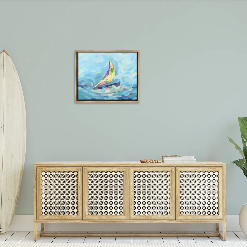 Elevate your home or office to the next level with Stupell Framed Floating Canvas Wall Art. Our premium hand-stretched canvas is mounted securely into a sturdy lightweight frame. The museum-style gap between the wrapped canvas and the box frame gives the illusion of floating artwork. Stupell Wall Art is made in the USA.Features: Dimensions: 21 x 1.7 x 17 Frame, 20 x 1.5 x 16 Canvas ArtFloating Frame Canvas Products are available in sizes 21"x17" and 31"x25". All Floating Frame Canvas Products have a 1.7" Depth.Wall Art is Ready to Hang with Hardware Free Hanging. No Installation required. For Easy Set Up Lean or Layer Artwork on Shelf or Against Wall. Artwork is Permently Fixed into the Frame.Our elevated 1.7" Thick Floating Frame is the perfect complement to our canvas style Wall Art. We use only the highest quality inks in house with industry leading printing solutions. Canvas is hand stretched over a durable wood foundation and then mounted securly into a Modern Box Frame. Made in the USA.Artwork Relates To: Boat, Sailboat, Watercraft, Nautical, Maritime, Abstract, ModernDesign by June Erica Vess