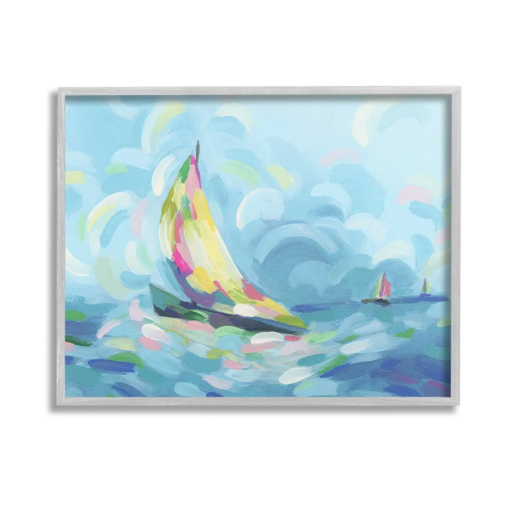Elevate your home or office to the next level with Stupell Framed Floating Canvas Wall Art. Our premium hand-stretched canvas is mounted securely into a sturdy lightweight frame. The museum-style gap between the wrapped canvas and the box frame gives the illusion of floating artwork. Stupell Wall Art is made in the USA.Features: Dimensions: 21 x 1.7 x 17 Frame, 20 x 1.5 x 16 Canvas ArtFloating Frame Canvas Products are available in sizes 21"x17" and 31"x25". All Floating Frame Canvas Products have a 1.7" Depth.Wall Art is Ready to Hang with Hardware Free Hanging. No Installation required. For Easy Set Up Lean or Layer Artwork on Shelf or Against Wall. Artwork is Permently Fixed into the Frame.Our elevated 1.7" Thick Floating Frame is the perfect complement to our canvas style Wall Art. We use only the highest quality inks in house with industry leading printing solutions. Canvas is hand stretched over a durable wood foundation and then mounted securly into a Modern Box Frame. Made in the USA.Artwork Relates To: Boat, Sailboat, Watercraft, Nautical, Maritime, Abstract, ModernDesign by June Erica Vess