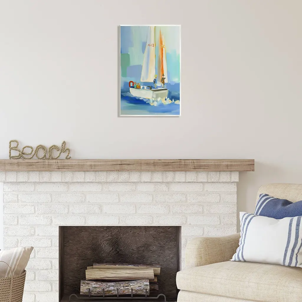 Our wall plaques start as high-quality lithograph prints mounted on durable 0.5-inch thick MDF wood. Each piece is hand finished and comes with a fresh layer of white foil on the sides to give it a crisp, clean look. Plaques arrive ready to hang without installation and come with removable plastic corners to keep them from damage in transit. Wall Art is made in the USA.Features: Dimensions: 10 x 0.5 x 15 InchesWall Plaque Sizes Include Standard: 10 x 0.5 x 15 Oversized: 13 x 0.5 x 19Wall Art is Ready to Hang with Hardware Free Hanging. No installation required. For Easy Set Up Lean or Layer Artwork on Shelf or Against Wall.All of our wall plaques start off as high quality lithograph prints that are then mounted on durable 0.5 inch thick MDF wood. Each piece is hand finished and comes with a fresh layer of foil on the sides to give it a crisp clean look. Made In USA.Artwork Relates To: Boat, Sailboat, Watercraft, Dinghy, Painting, Person, Water, Ocean, Abstract, ModernDesign by Jenny Westenhofer