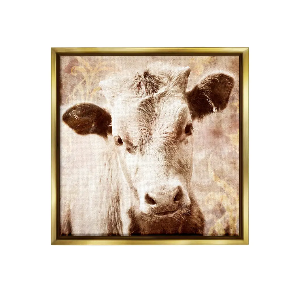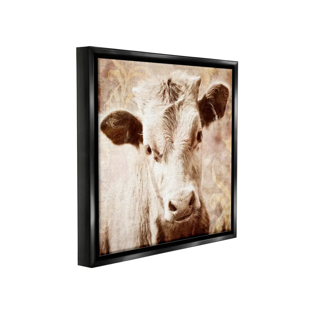 Elevate your home or office to the next level with Stupell Framed Floating Canvas Wall Art. Our premium hand-stretched canvas is mounted securely into a sturdy lightweight frame. The museum-style gap between the wrapped canvas and the box frame gives the illusion of floating artwork. Stupell Wall Art is made in the USA.Features: Dimensions: 18 x 1.7 x 18 Frame, 17 x 1.5 x 17 Canvas ArtFloating Frame Canvas Products are available in sizes 18"x18" and 25"x25". All Floating Frame Canvas Products have a 1.7" Depth.Wall Art is Ready to Hang with Hardware Free Hanging. No Installation required. For Easy Set Up Lean or Layer Artwork on Shelf or Against Wall. Artwork is Permently Fixed into the Frame.Our elevated 1.7" Thick Floating Frame is the perfect complement to our canvas style Wall Art. We use only the highest quality inks in house with industry leading printing solutions. Canvas is hand stretched over a durable wood foundation and then mounted securly into a Modern Box Frame. Made in the USA.Artwork Relates To: Animal, Cattle, Cow, Mammal, Calf, Farm, CountryDesign by GraffiTee Studios