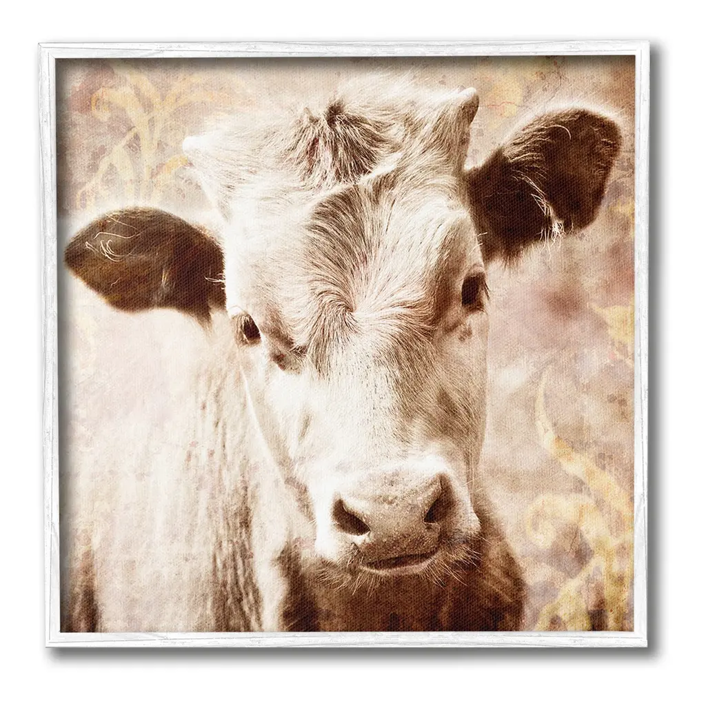 Elevate your home or office to the next level with Stupell Framed Floating Canvas Wall Art. Our premium hand-stretched canvas is mounted securely into a sturdy lightweight frame. The museum-style gap between the wrapped canvas and the box frame gives the illusion of floating artwork. Stupell Wall Art is made in the USA.Features: Dimensions: 18 x 1.7 x 18 Frame, 17 x 1.5 x 17 Canvas ArtFloating Frame Canvas Products are available in sizes 18"x18" and 25"x25". All Floating Frame Canvas Products have a 1.7" Depth.Wall Art is Ready to Hang with Hardware Free Hanging. No Installation required. For Easy Set Up Lean or Layer Artwork on Shelf or Against Wall. Artwork is Permently Fixed into the Frame.Our elevated 1.7" Thick Floating Frame is the perfect complement to our canvas style Wall Art. We use only the highest quality inks in house with industry leading printing solutions. Canvas is hand stretched over a durable wood foundation and then mounted securly into a Modern Box Frame. Made in the USA.Artwork Relates To: Animal, Cattle, Cow, Mammal, Calf, Farm, CountryDesign by GraffiTee Studios