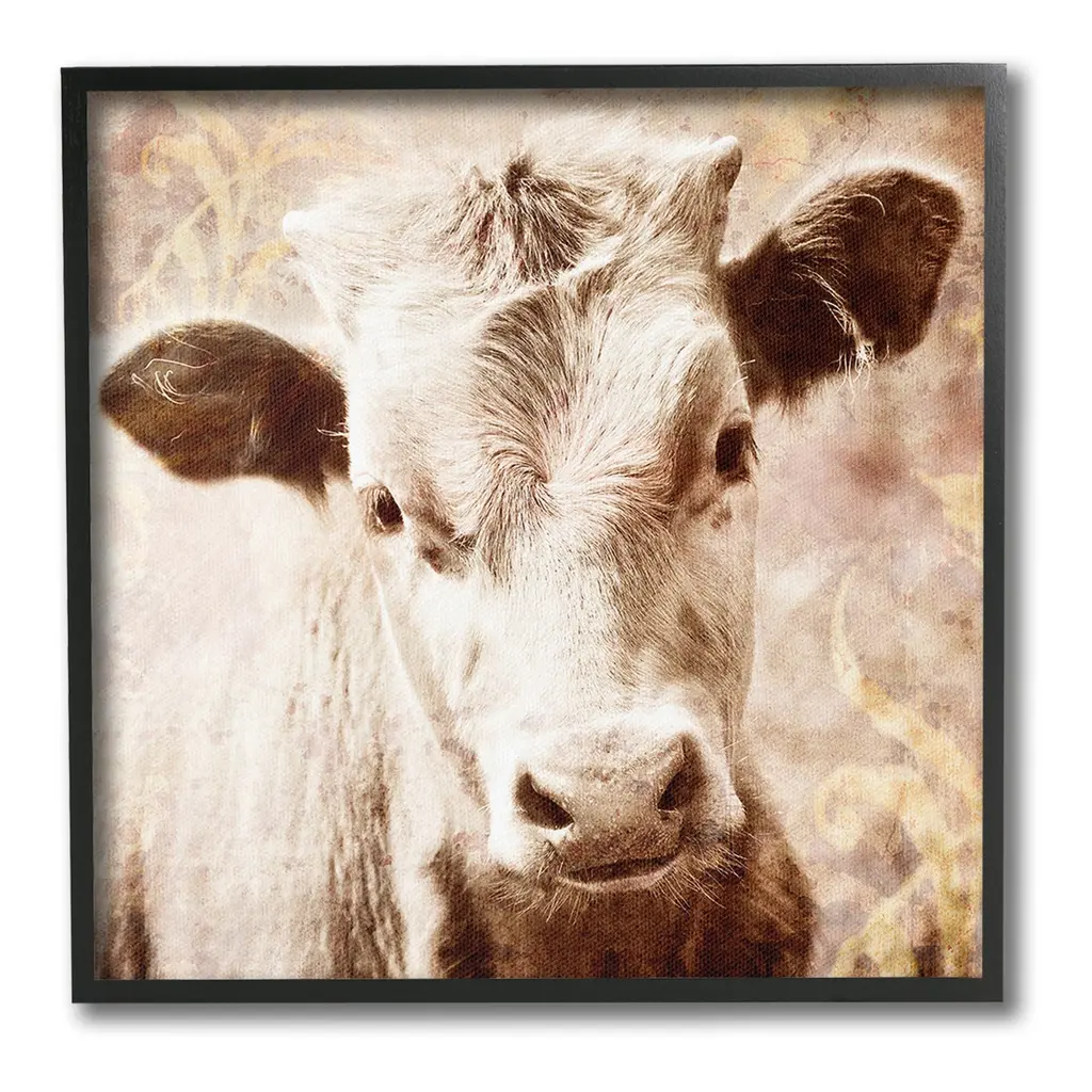 Add dimension to any room with our textured Framed Giclee Artwork. Our framed artwork is securely mounted into a 1.5-inch thick wood grain frame and ready to hang. Frames are available in three alluring styles: black, gray farmhouse and white. In addition, you should check out our oversized options if you want a statement piece. Stupell Wall Art is made in the USA.Features: Dimensions: 12 x 1.5 x 12 FramedFramed Giclee Product Sizes Include 12"x12", 17"x17", and 24"x24". Framed Giclee Products have a 1.5" Depth. Wall Art is Ready to Hang with Hardware Free Hanging. No installation required. For Easy Set Up Lean or Layer Artwork on Shelf or Against Wall.Our giclée prints are carefully mounted on a durable MDF backing, and then perfectly finished in a 1.5 inch thick woodgrain frame. Mounted frame colors include black, gray farmhouse and white. Made In USA.Artwork Relates To: Animal, Cattle, Cow, Mammal, Calf, Farm, CountryDesign by GraffiTee Studios