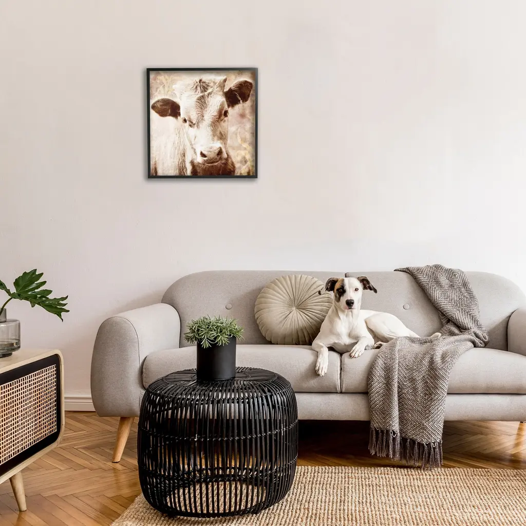 Add dimension to any room with our textured Framed Giclee Artwork. Our framed artwork is securely mounted into a 1.5-inch thick wood grain frame and ready to hang. Frames are available in three alluring styles: black, gray farmhouse and white. In addition, you should check out our oversized options if you want a statement piece. Stupell Wall Art is made in the USA.Features: Dimensions: 12 x 1.5 x 12 FramedFramed Giclee Product Sizes Include 12"x12", 17"x17", and 24"x24". Framed Giclee Products have a 1.5" Depth. Wall Art is Ready to Hang with Hardware Free Hanging. No installation required. For Easy Set Up Lean or Layer Artwork on Shelf or Against Wall.Our giclée prints are carefully mounted on a durable MDF backing, and then perfectly finished in a 1.5 inch thick woodgrain frame. Mounted frame colors include black, gray farmhouse and white. Made In USA.Artwork Relates To: Animal, Cattle, Cow, Mammal, Calf, Farm, CountryDesign by GraffiTee Studios