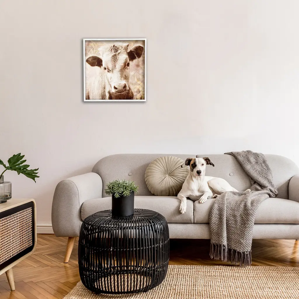 Add dimension to any room with our textured Framed Giclee Artwork. Our framed artwork is securely mounted into a 1.5-inch thick wood grain frame and ready to hang. Frames are available in three alluring styles: black, gray farmhouse and white. In addition, you should check out our oversized options if you want a statement piece. Stupell Wall Art is made in the USA.Features: Dimensions: 12 x 1.5 x 12 FramedFramed Giclee Product Sizes Include 12"x12", 17"x17", and 24"x24". Framed Giclee Products have a 1.5" Depth. Wall Art is Ready to Hang with Hardware Free Hanging. No installation required. For Easy Set Up Lean or Layer Artwork on Shelf or Against Wall.Our giclée prints are carefully mounted on a durable MDF backing, and then perfectly finished in a 1.5 inch thick woodgrain frame. Mounted frame colors include black, gray farmhouse and white. Made In USA.Artwork Relates To: Animal, Cattle, Cow, Mammal, Calf, Farm, CountryDesign by GraffiTee Studios