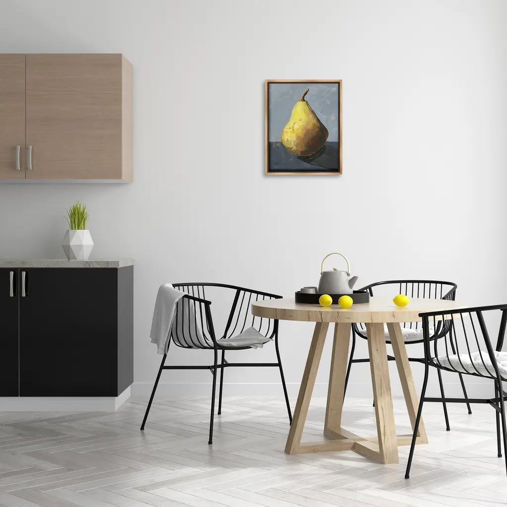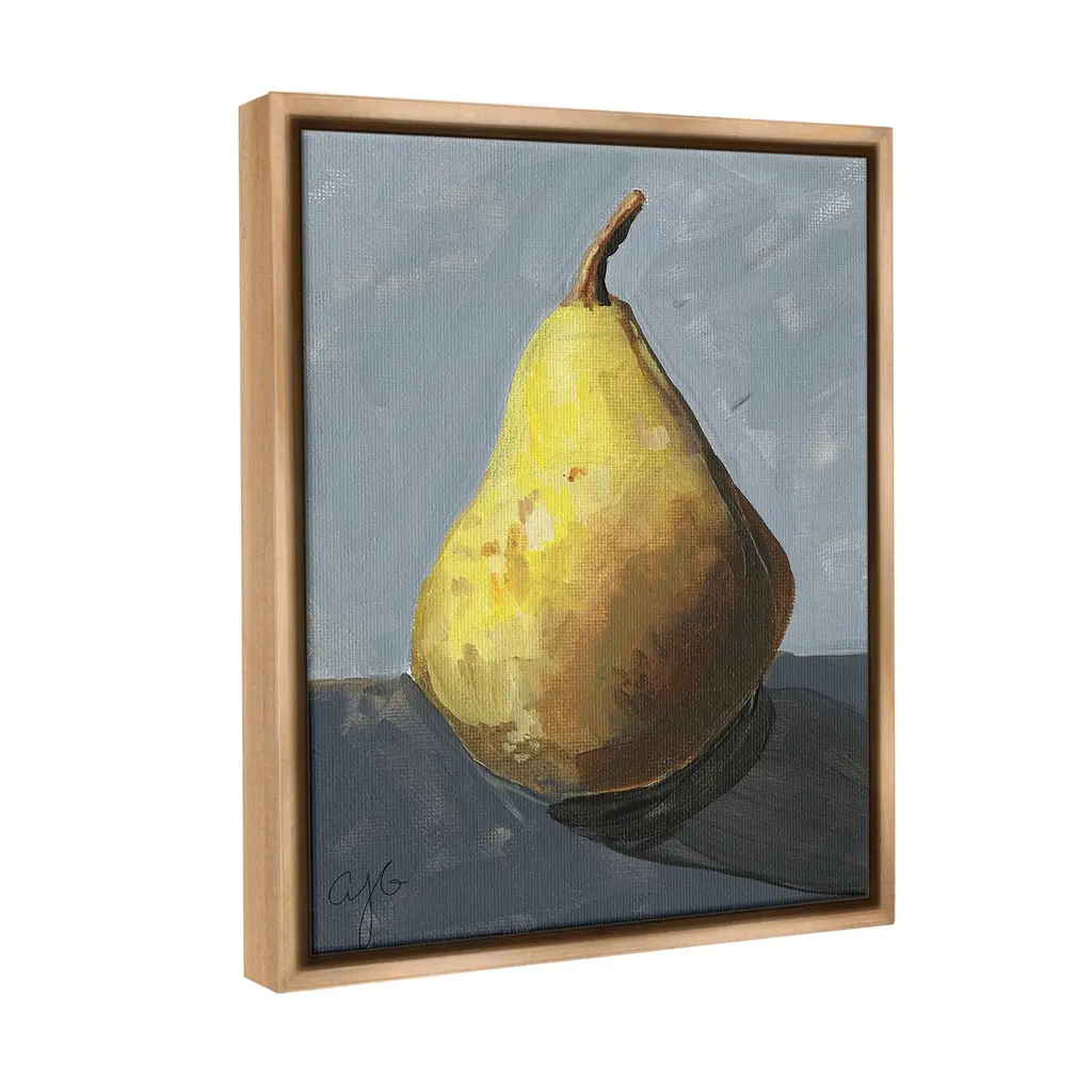 Elevate your home or office to the next level with Stupell Framed Floating Canvas Wall Art. Our premium hand-stretched canvas is mounted securely into a sturdy lightweight frame. The museum-style gap between the wrapped canvas and the box frame gives the illusion of floating artwork. Stupell Wall Art is made in the USA.Features: Dimensions: 17 x 1.7 x 21 Frame, 16 x 1.5 x 20 Canvas ArtFloating Frame Canvas Products are available in sizes 17"x21" and 25"x31". All Floating Frame Canvas Products have a 1.7" Depth.Wall Art is Ready to Hang with Hardware Free Hanging. No Installation required. For Easy Set Up Lean or Layer Artwork on Shelf or Against Wall. Artwork is Permently Fixed into the Frame.Our elevated 1.7" Thick Floating Frame is the perfect complement to our canvas style Wall Art. We use only the highest quality inks in house with industry leading printing solutions. Canvas is hand stretched over a durable wood foundation and then mounted securly into a Modern Box Frame. Made in the USA.Artwork Relates To: Food, Fruit, Plant, Produce, Pear, Abstract, Still Life, TraditionalDesign by Alexandria Gilbert Kincaid