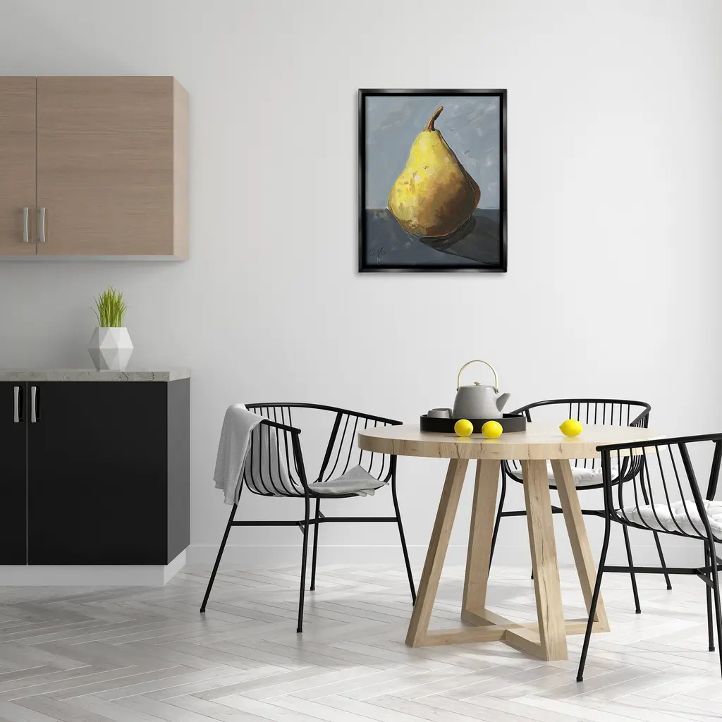 Elevate your home or office to the next level with Stupell Framed Floating Canvas Wall Art. Our premium hand-stretched canvas is mounted securely into a sturdy lightweight frame. The museum-style gap between the wrapped canvas and the box frame gives the illusion of floating artwork. Stupell Wall Art is made in the USA.Features: Dimensions: 17 x 1.7 x 21 Frame, 16 x 1.5 x 20 Canvas ArtFloating Frame Canvas Products are available in sizes 17"x21" and 25"x31". All Floating Frame Canvas Products have a 1.7" Depth.Wall Art is Ready to Hang with Hardware Free Hanging. No Installation required. For Easy Set Up Lean or Layer Artwork on Shelf or Against Wall. Artwork is Permently Fixed into the Frame.Our elevated 1.7" Thick Floating Frame is the perfect complement to our canvas style Wall Art. We use only the highest quality inks in house with industry leading printing solutions. Canvas is hand stretched over a durable wood foundation and then mounted securly into a Modern Box Frame. Made in the USA.Artwork Relates To: Food, Fruit, Plant, Produce, Pear, Abstract, Still Life, TraditionalDesign by Alexandria Gilbert Kincaid
