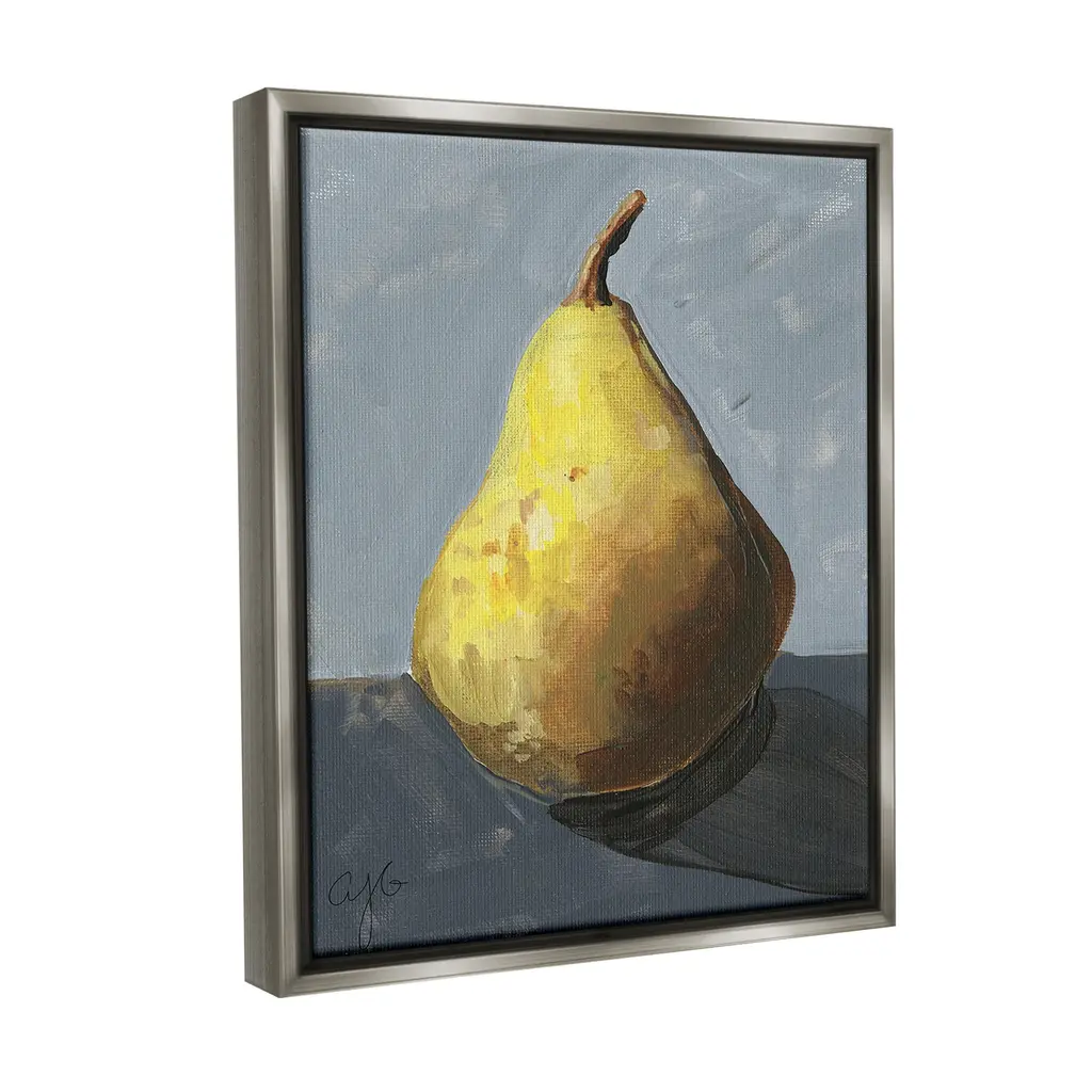 Elevate your home or office to the next level with Stupell Framed Floating Canvas Wall Art. Our premium hand-stretched canvas is mounted securely into a sturdy lightweight frame. The museum-style gap between the wrapped canvas and the box frame gives the illusion of floating artwork. Stupell Wall Art is made in the USA.Features: Dimensions: 17 x 1.7 x 21 Frame, 16 x 1.5 x 20 Canvas ArtFloating Frame Canvas Products are available in sizes 17"x21" and 25"x31". All Floating Frame Canvas Products have a 1.7" Depth.Wall Art is Ready to Hang with Hardware Free Hanging. No Installation required. For Easy Set Up Lean or Layer Artwork on Shelf or Against Wall. Artwork is Permently Fixed into the Frame.Our elevated 1.7" Thick Floating Frame is the perfect complement to our canvas style Wall Art. We use only the highest quality inks in house with industry leading printing solutions. Canvas is hand stretched over a durable wood foundation and then mounted securly into a Modern Box Frame. Made in the USA.Artwork Relates To: Food, Fruit, Plant, Produce, Pear, Abstract, Still Life, TraditionalDesign by Alexandria Gilbert Kincaid