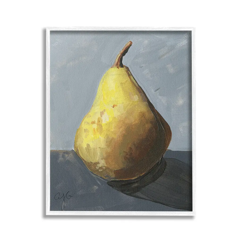 Add dimension to any room with our textured Framed Giclee Artwork. Our framed artwork is securely mounted into a 1.5-inch thick wood grain frame and ready to hang. Frames are available in three alluring styles: black, gray farmhouse and white. In addition, you should check out our oversized options if you want a statement piece. Stupell Wall Art is made in the USA.Features: Dimensions: 11 x 1.5 x 14 FramedFramed Giclee Products are available in the sizes 11"x14", 16"x20" or 24"x30". All Framed Giclee Products have a 1.5" Depth. Wall Art is Ready to Hang with Hardware Free Hanging. No installation required. For Easy Set Up Lean or Layer Artwork on Shelf or Against Wall.Our giclée prints are carefully mounted on a durable MDF backing, and then perfectly finished in a 1.5 inch thick woodgrain frame. Mounted frame colors include black, gray farmhouse and white. Made In USA.Artwork Relates To: Food, Fruit, Plant, Produce, Pear, Abstract, Still Life, TraditionalDesign by Alexandria Gilbert Kincaid