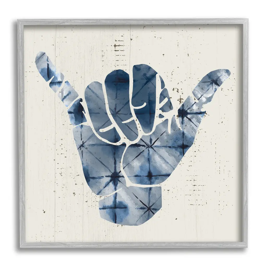 Stupell Abstract Shaka Sign Hand Gesture Blue Geometric Pattern Framed Wall Art - 12 X 12 - White