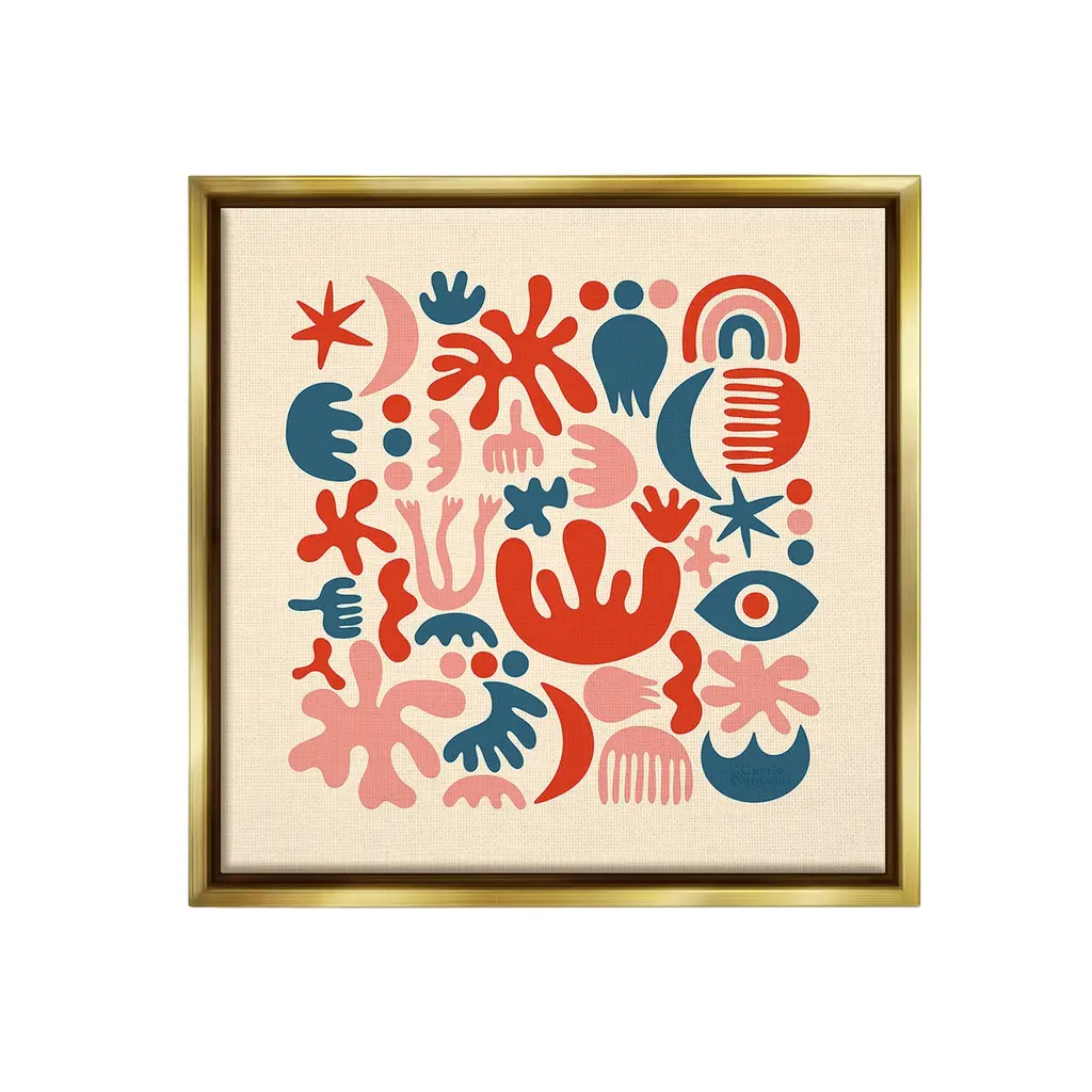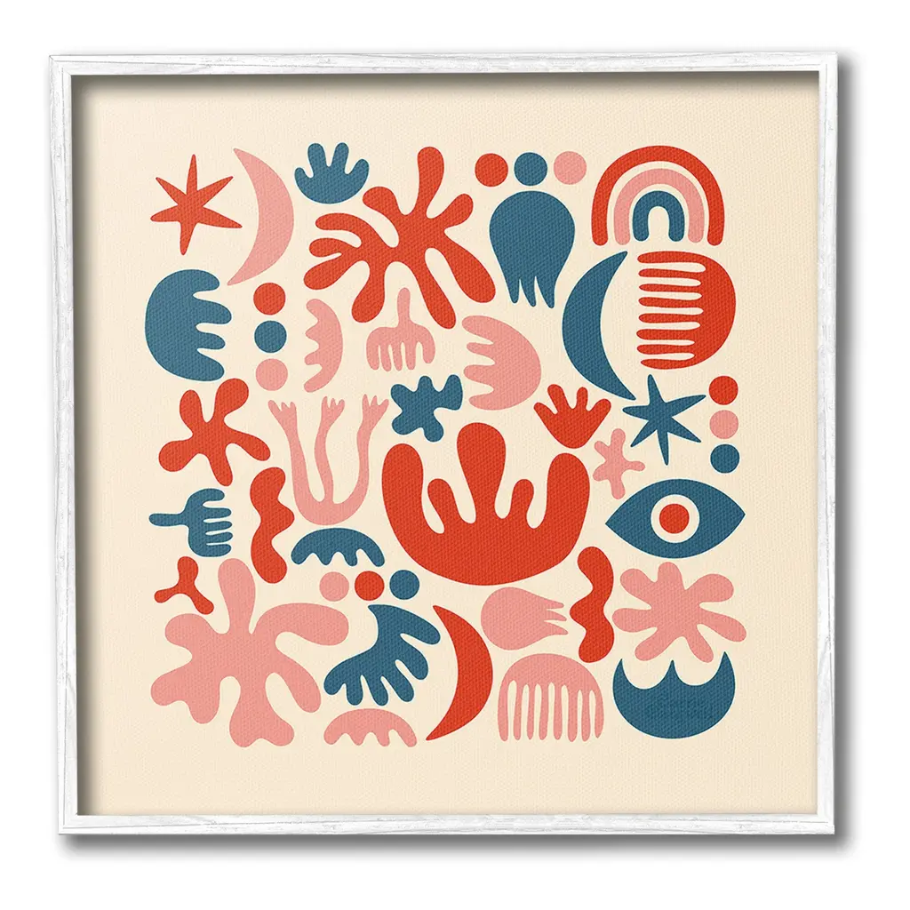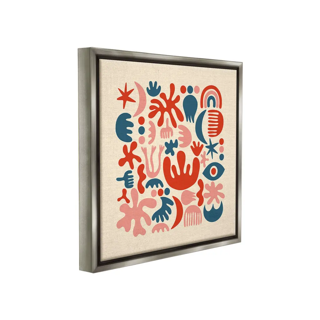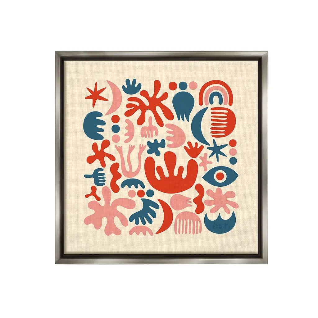 Elevate your home or office to the next level with Stupell Framed Floating Canvas Wall Art. Our premium hand-stretched canvas is mounted securely into a sturdy lightweight frame. The museum-style gap between the wrapped canvas and the box frame gives the illusion of floating artwork. Stupell Wall Art is made in the USA.Features: Dimensions: 18 x 1.7 x 18 Frame, 17 x 1.5 x 17 Canvas ArtFloating Frame Canvas Products are available in sizes 18"x18" and 25"x25". All Floating Frame Canvas Products have a 1.7" Depth.Wall Art is Ready to Hang with Hardware Free Hanging. No Installation required. For Easy Set Up Lean or Layer Artwork on Shelf or Against Wall. Artwork is Permently Fixed into the Frame.Our elevated 1.7" Thick Floating Frame is the perfect complement to our canvas style Wall Art. We use only the highest quality inks in house with industry leading printing solutions. Canvas is hand stretched over a durable wood foundation and then mounted securly into a Modern Box Frame. Made in the USA.Artwork Relates To: Pattern, Floral, Flower, Plant, Modern, Shape, Geometric, AbstractDesign by Carrie Cantwell