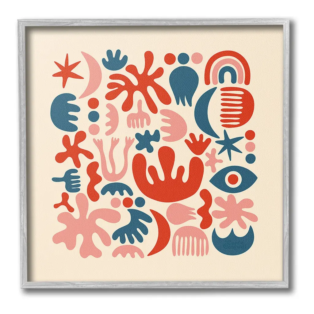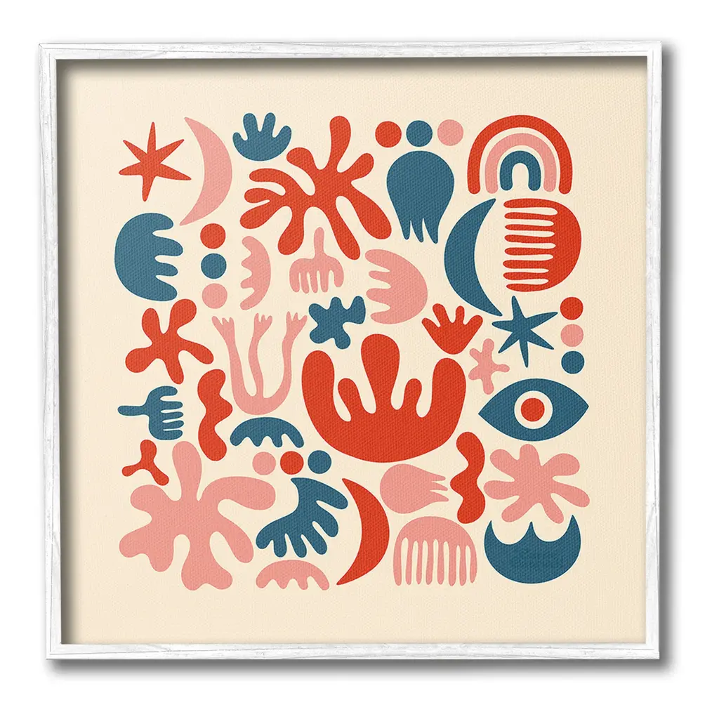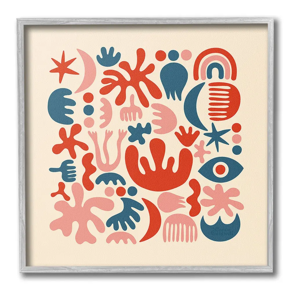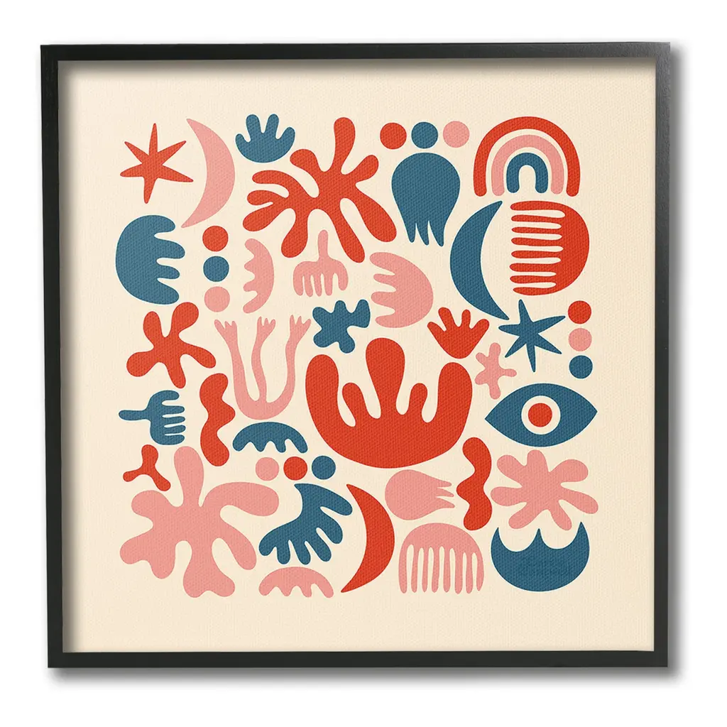 Elevate your home or office to the next level with Stupell Framed Floating Canvas Wall Art. Our premium hand-stretched canvas is mounted securely into a sturdy lightweight frame. The museum-style gap between the wrapped canvas and the box frame gives the illusion of floating artwork. Stupell Wall Art is made in the USA.Features: Dimensions: 18 x 1.7 x 18 Frame, 17 x 1.5 x 17 Canvas ArtFloating Frame Canvas Products are available in sizes 18"x18" and 25"x25". All Floating Frame Canvas Products have a 1.7" Depth.Wall Art is Ready to Hang with Hardware Free Hanging. No Installation required. For Easy Set Up Lean or Layer Artwork on Shelf or Against Wall. Artwork is Permently Fixed into the Frame.Our elevated 1.7" Thick Floating Frame is the perfect complement to our canvas style Wall Art. We use only the highest quality inks in house with industry leading printing solutions. Canvas is hand stretched over a durable wood foundation and then mounted securly into a Modern Box Frame. Made in the USA.Artwork Relates To: Pattern, Floral, Flower, Plant, Modern, Shape, Geometric, AbstractDesign by Carrie Cantwell