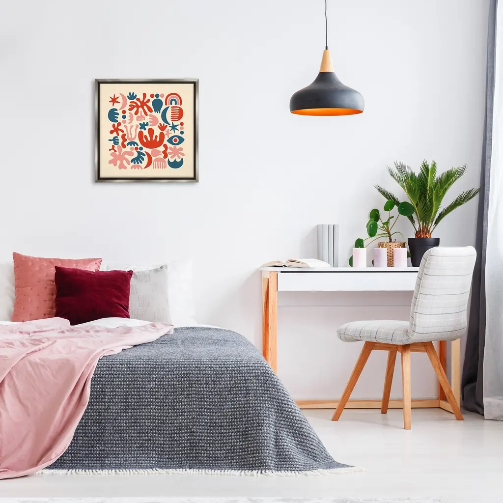 Elevate your home or office to the next level with Stupell Framed Floating Canvas Wall Art. Our premium hand-stretched canvas is mounted securely into a sturdy lightweight frame. The museum-style gap between the wrapped canvas and the box frame gives the illusion of floating artwork. Stupell Wall Art is made in the USA.Features: Dimensions: 18 x 1.7 x 18 Frame, 17 x 1.5 x 17 Canvas ArtFloating Frame Canvas Products are available in sizes 18"x18" and 25"x25". All Floating Frame Canvas Products have a 1.7" Depth.Wall Art is Ready to Hang with Hardware Free Hanging. No Installation required. For Easy Set Up Lean or Layer Artwork on Shelf or Against Wall. Artwork is Permently Fixed into the Frame.Our elevated 1.7" Thick Floating Frame is the perfect complement to our canvas style Wall Art. We use only the highest quality inks in house with industry leading printing solutions. Canvas is hand stretched over a durable wood foundation and then mounted securly into a Modern Box Frame. Made in the USA.Artwork Relates To: Pattern, Floral, Flower, Plant, Modern, Shape, Geometric, AbstractDesign by Carrie Cantwell