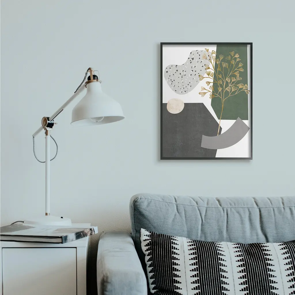 Stupell Abstract Shapes With Golden Floral Detail Framed Wall Art - 24 X 30 - Black