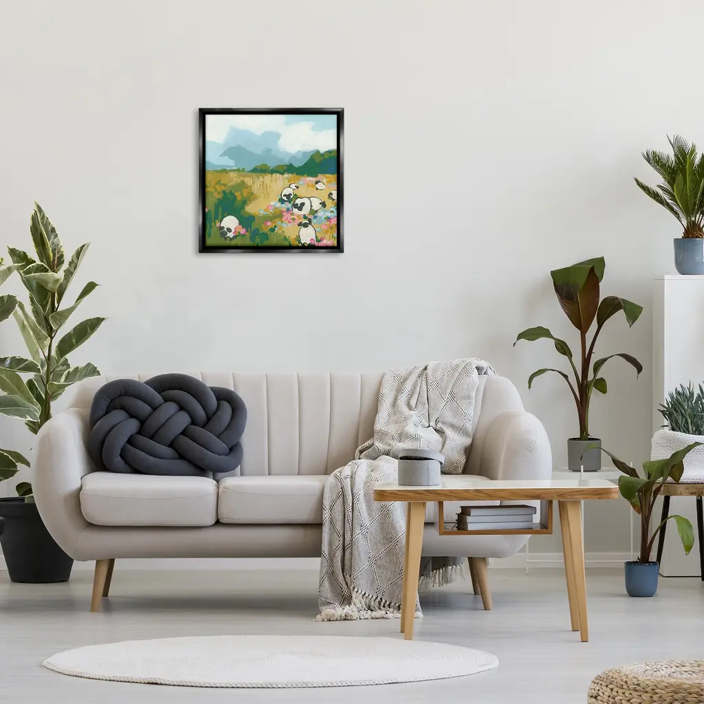 Stupell Abstract Sheep & Flowers Framed Floater Canvas Wall Art Design By June Erica Vess - 25 X 25 - Black