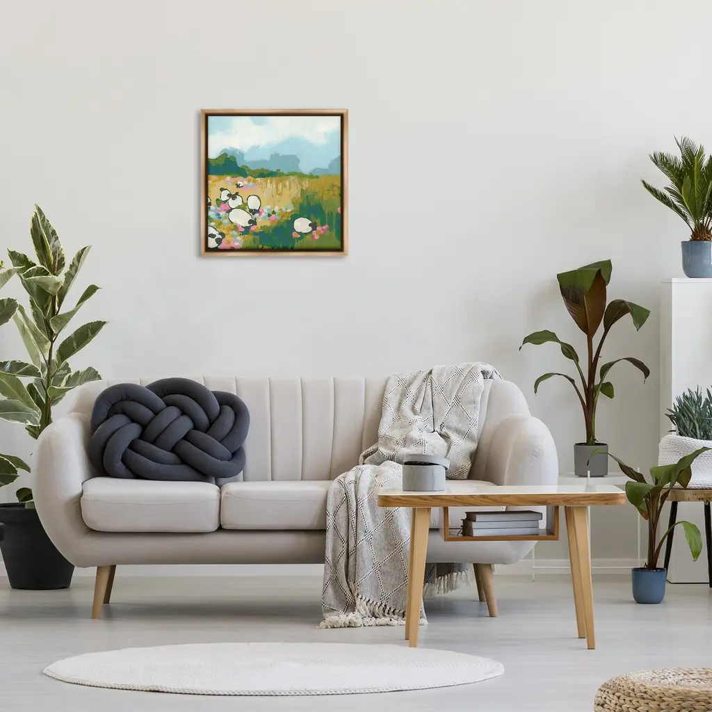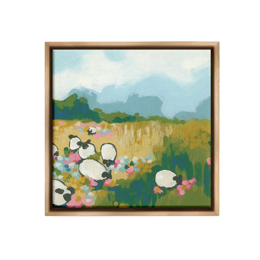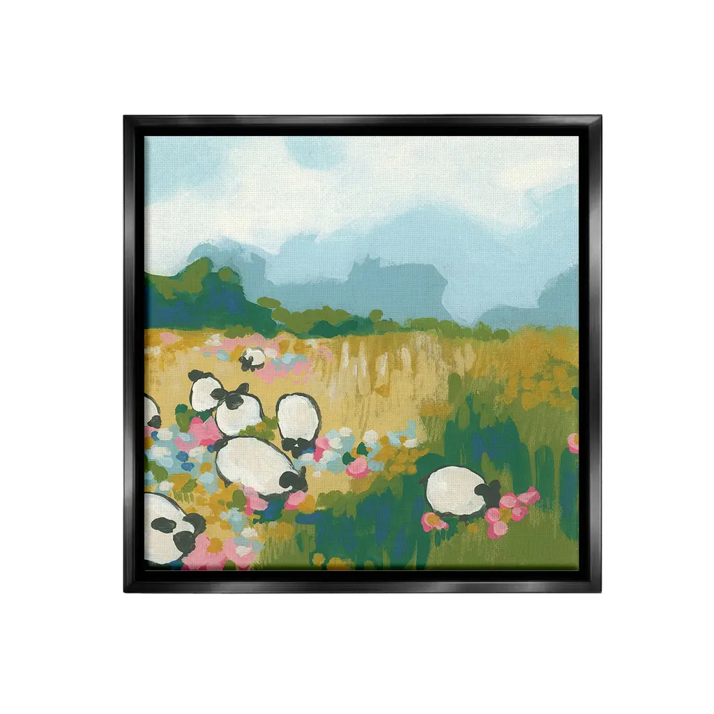 Elevate your home or office to the next level with Stupell Framed Floating Canvas Wall Art. Our premium hand-stretched canvas is mounted securely into a sturdy lightweight frame. The museum-style gap between the wrapped canvas and the box frame gives the illusion of floating artwork. Stupell Wall Art is made in the USA.Features: Dimensions: 18 x 1.7 x 18 Frame, 17 x 1.5 x 17 Canvas ArtFloating Frame Canvas Products are available in sizes 18"x18" and 25"x25". All Floating Frame Canvas Products have a 1.7" Depth.Wall Art is Ready to Hang with Hardware Free Hanging. No Installation required. For Easy Set Up Lean or Layer Artwork on Shelf or Against Wall. Artwork is Permently Fixed into the Frame.Our elevated 1.7" Thick Floating Frame is the perfect complement to our canvas style Wall Art. We use only the highest quality inks in house with industry leading printing solutions. Canvas is hand stretched over a durable wood foundation and then mounted securly into a Modern Box Frame. Made in the USA.Artwork Relates To: Painting, Field, Grassland, Nature, Flower, Plant, Countryside, Meadow, Rural, Petal, Modern, Floral, Abstract, Animal, SheepDesign by June Erica Vess