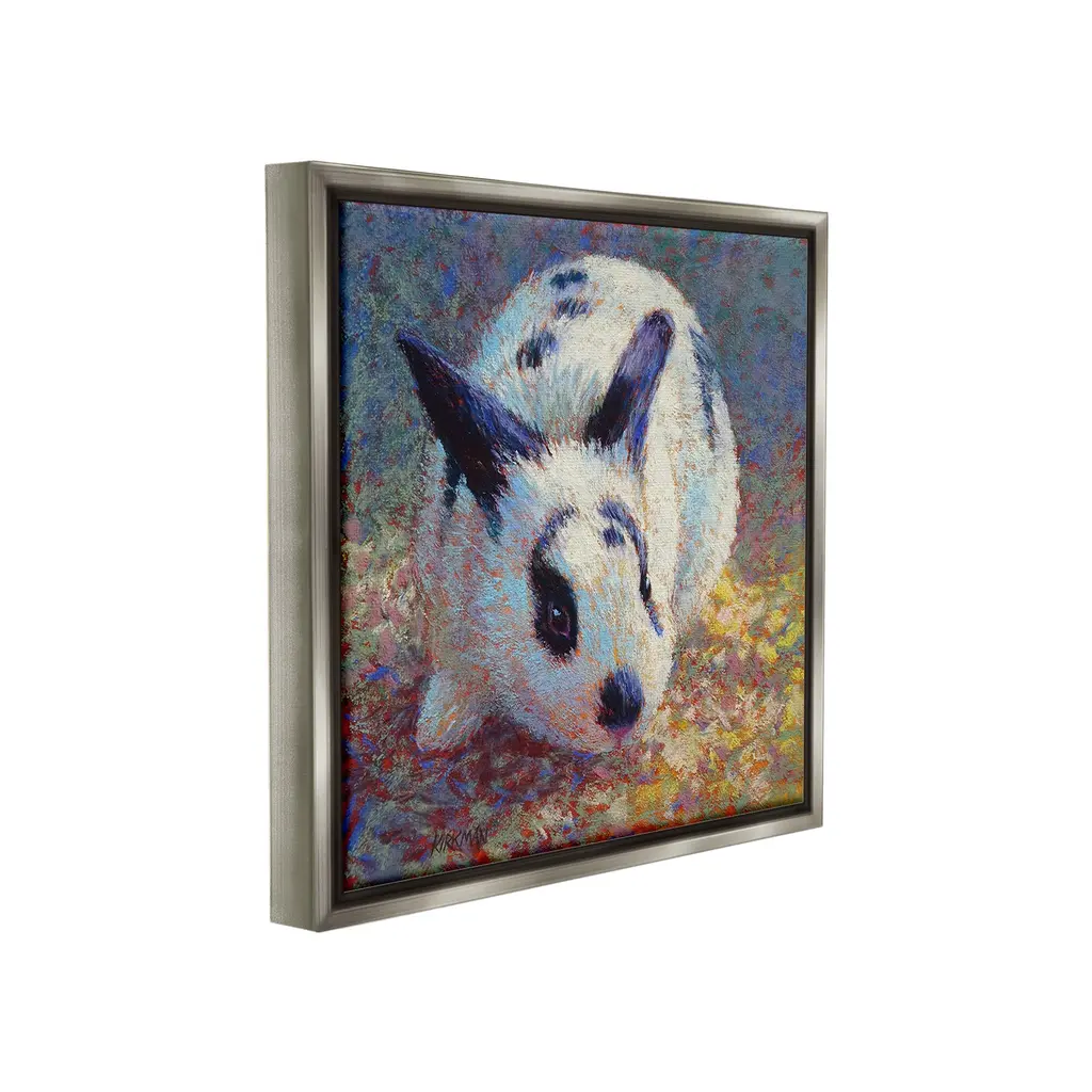 Elevate your home or office to the next level with Stupell Framed Floating Canvas Wall Art. Our premium hand-stretched canvas is mounted securely into a sturdy lightweight frame. The museum-style gap between the wrapped canvas and the box frame gives the illusion of floating artwork. Stupell Wall Art is made in the USA.Features: Dimensions: 18 x 1.7 x 18 Frame, 17 x 1.5 x 17 Canvas ArtFloating Frame Canvas Products are available in sizes 18"x18" and 25"x25". All Floating Frame Canvas Products have a 1.7" Depth.Wall Art is Ready to Hang with Hardware Free Hanging. No Installation required. For Easy Set Up Lean or Layer Artwork on Shelf or Against Wall. Artwork is Permently Fixed into the Frame.Our elevated 1.7" Thick Floating Frame is the perfect complement to our canvas style Wall Art. We use only the highest quality inks in house with industry leading printing solutions. Canvas is hand stretched over a durable wood foundation and then mounted securly into a Modern Box Frame. Made in the USA.Artwork Relates To: Painting, Animal, Mammal, Rabbit, Bunny, Abstract, Traditional, Nature, PointillismDesign by Rita Kirkman