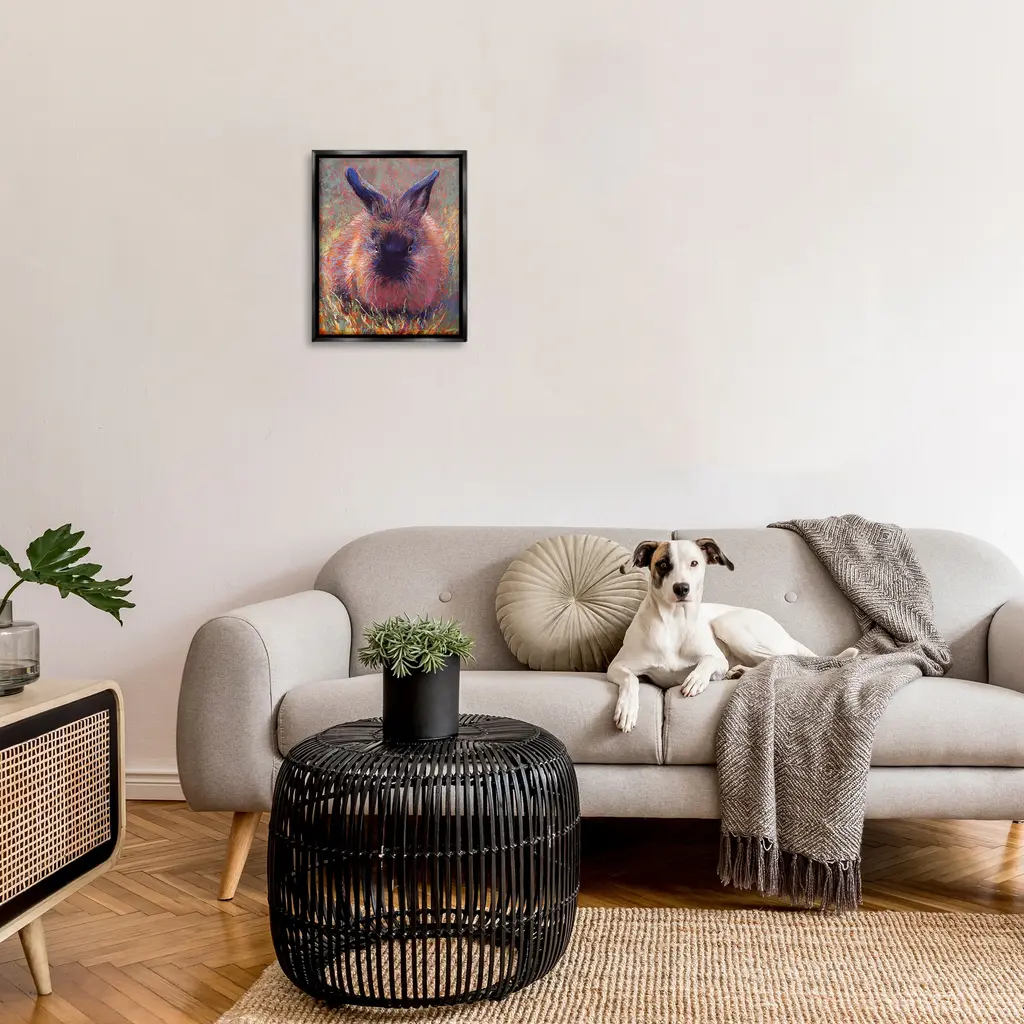 Elevate your home or office to the next level with Stupell Framed Floating Canvas Wall Art. Our premium hand-stretched canvas is mounted securely into a sturdy lightweight frame. The museum-style gap between the wrapped canvas and the box frame gives the illusion of floating artwork. Stupell Wall Art is made in the USA.Features: Dimensions: 17 x 1.7 x 21 Frame, 16 x 1.5 x 20 Canvas ArtFloating Frame Canvas Products are available in sizes 17"x21" and 25"x31". All Floating Frame Canvas Products have a 1.7" Depth.Wall Art is Ready to Hang with Hardware Free Hanging. No Installation required. For Easy Set Up Lean or Layer Artwork on Shelf or Against Wall. Artwork is Permently Fixed into the Frame.Our elevated 1.7" Thick Floating Frame is the perfect complement to our canvas style Wall Art. We use only the highest quality inks in house with industry leading printing solutions. Canvas is hand stretched over a durable wood foundation and then mounted securly into a Modern Box Frame. Made in the USA.Artwork Relates To: Painting, Animal, Mammal, Rabbit, Bunny, Abstract, Traditional, Nature, PointillismDesign by Rita Kirkman