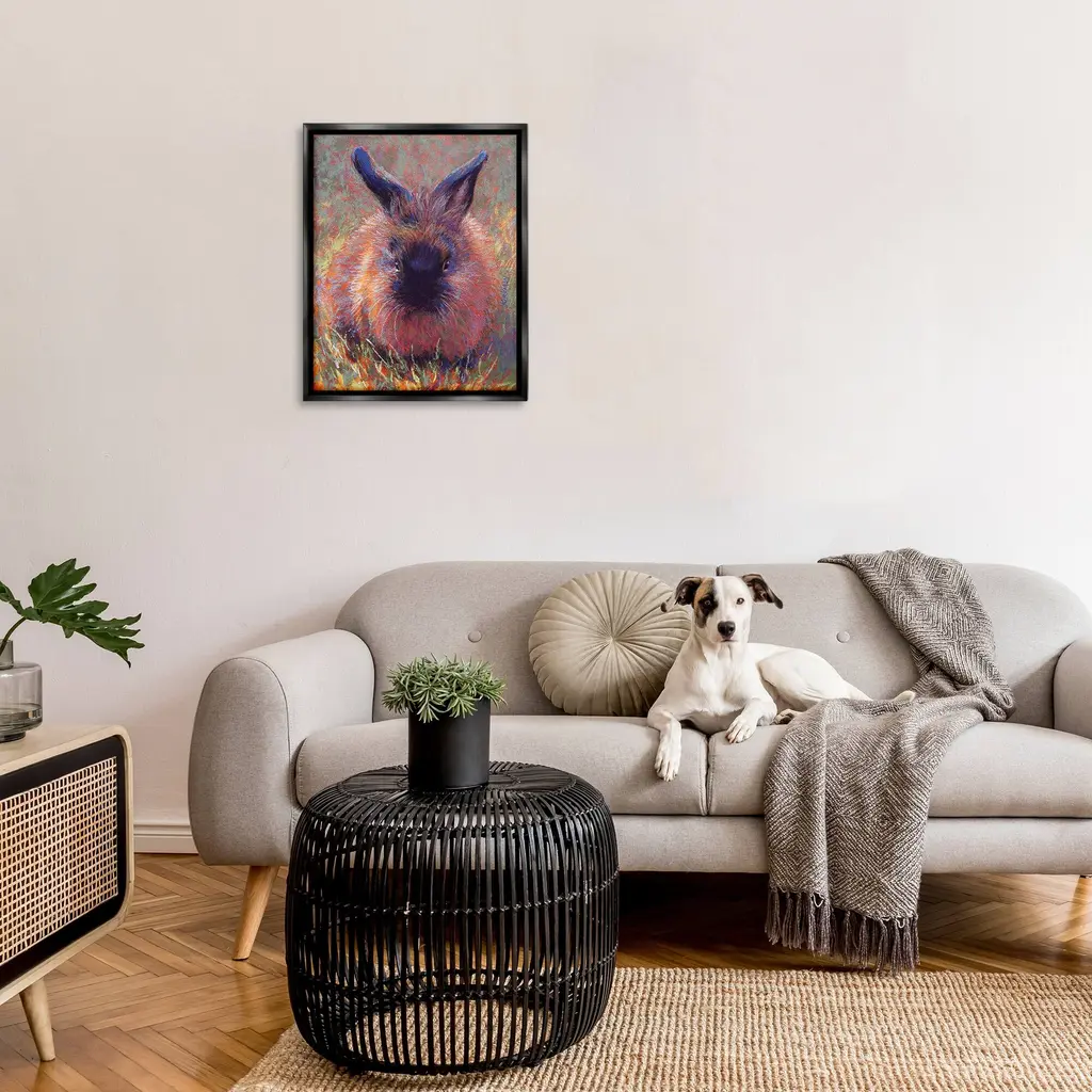 Elevate your home or office to the next level with Stupell Framed Floating Canvas Wall Art. Our premium hand-stretched canvas is mounted securely into a sturdy lightweight frame. The museum-style gap between the wrapped canvas and the box frame gives the illusion of floating artwork. Stupell Wall Art is made in the USA.Features: Dimensions: 17 x 1.7 x 21 Frame, 16 x 1.5 x 20 Canvas ArtFloating Frame Canvas Products are available in sizes 17"x21" and 25"x31". All Floating Frame Canvas Products have a 1.7" Depth.Wall Art is Ready to Hang with Hardware Free Hanging. No Installation required. For Easy Set Up Lean or Layer Artwork on Shelf or Against Wall. Artwork is Permently Fixed into the Frame.Our elevated 1.7" Thick Floating Frame is the perfect complement to our canvas style Wall Art. We use only the highest quality inks in house with industry leading printing solutions. Canvas is hand stretched over a durable wood foundation and then mounted securly into a Modern Box Frame. Made in the USA.Artwork Relates To: Painting, Animal, Mammal, Rabbit, Bunny, Abstract, Traditional, Nature, PointillismDesign by Rita Kirkman