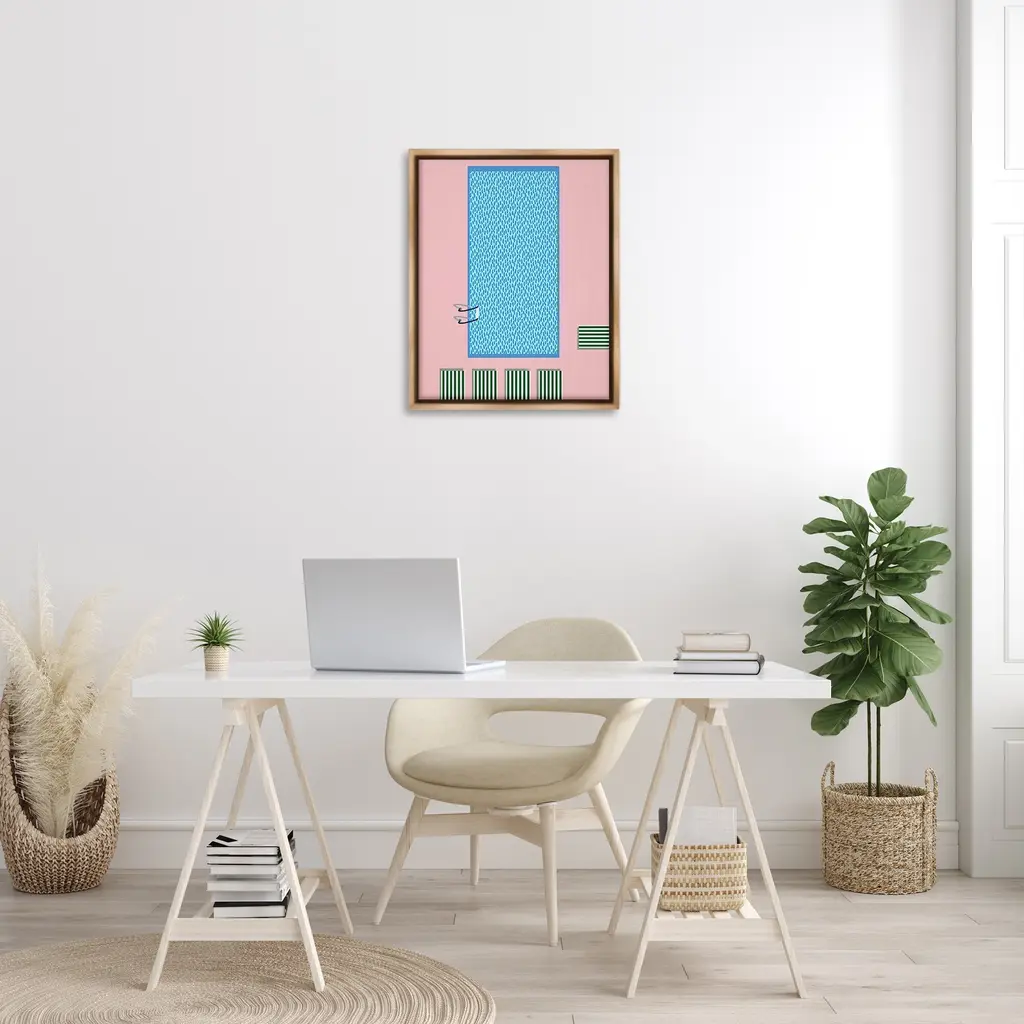 Elevate your home or office to the next level with Stupell Framed Floating Canvas Wall Art. Our premium hand-stretched canvas is mounted securely into a sturdy lightweight frame. The museum-style gap between the wrapped canvas and the box frame gives the illusion of floating artwork. Stupell Wall Art is made in the USA.Features: Dimensions: 17 x 1.7 x 21 Frame, 16 x 1.5 x 20 Canvas ArtFloating Frame Canvas Products are available in sizes 17"x21" and 25"x31". All Floating Frame Canvas Products have a 1.7" Depth.Wall Art is Ready to Hang with Hardware Free Hanging. No Installation required. For Easy Set Up Lean or Layer Artwork on Shelf or Against Wall. Artwork is Permently Fixed into the Frame.Our elevated 1.7" Thick Floating Frame is the perfect complement to our canvas style Wall Art. We use only the highest quality inks in house with industry leading printing solutions. Canvas is hand stretched over a durable wood foundation and then mounted securly into a Modern Box Frame. Made in the USA.Artwork Relates To: Abstract, Modern, Retro, Pool, Summer, Tropical, BeachDesign by Regina Moore