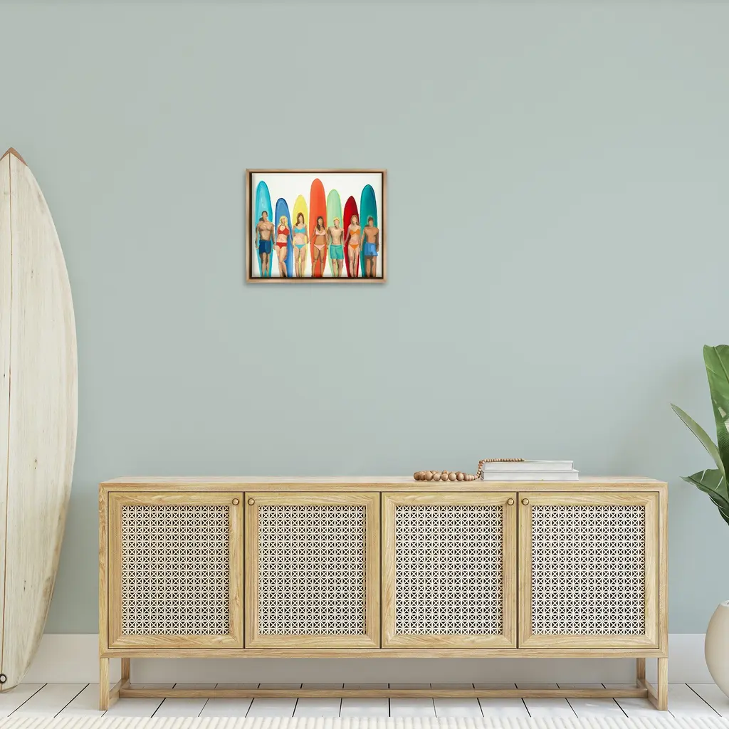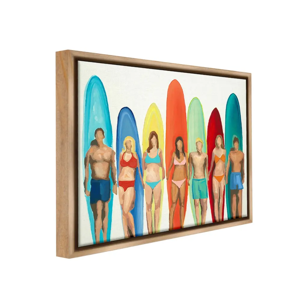 Elevate your home or office to the next level with Stupell Framed Floating Canvas Wall Art. Our premium hand-stretched canvas is mounted securely into a sturdy lightweight frame. The museum-style gap between the wrapped canvas and the box frame gives the illusion of floating artwork. Stupell Wall Art is made in the USA.Features: Dimensions: 21 x 1.7 x 17 Frame, 20 x 1.5 x 16 Canvas ArtFloating Frame Canvas Products are available in sizes 21"x17" and 31"x25". All Floating Frame Canvas Products have a 1.7" Depth.Wall Art is Ready to Hang with Hardware Free Hanging. No Installation required. For Easy Set Up Lean or Layer Artwork on Shelf or Against Wall. Artwork is Permently Fixed into the Frame.Our elevated 1.7" Thick Floating Frame is the perfect complement to our canvas style Wall Art. We use only the highest quality inks in house with industry leading printing solutions. Canvas is hand stretched over a durable wood foundation and then mounted securly into a Modern Box Frame. Made in the USA.Artwork Relates To: Sport, Surfing, Person, People, Woman, Man, Swimwear, Beach, Ocean, Sea, Shore, SummerDesign by Randy Hibberd