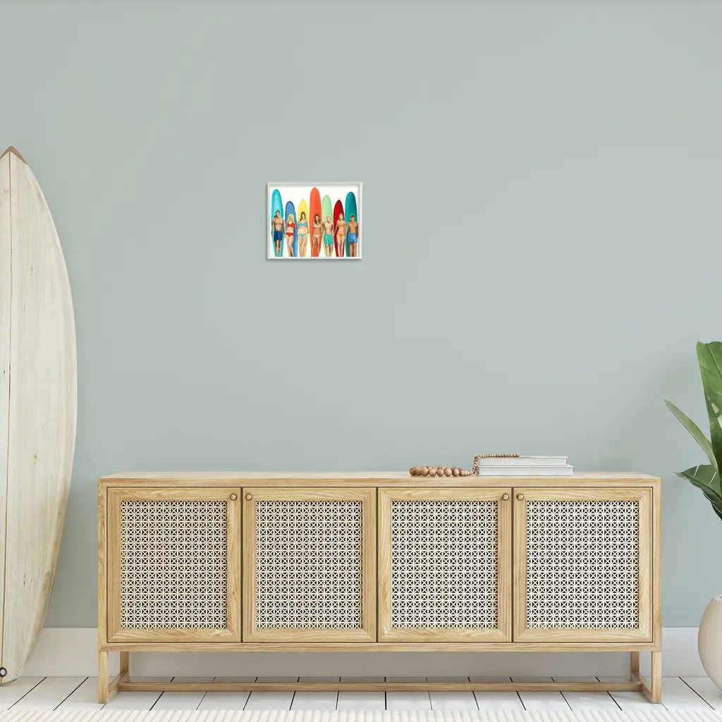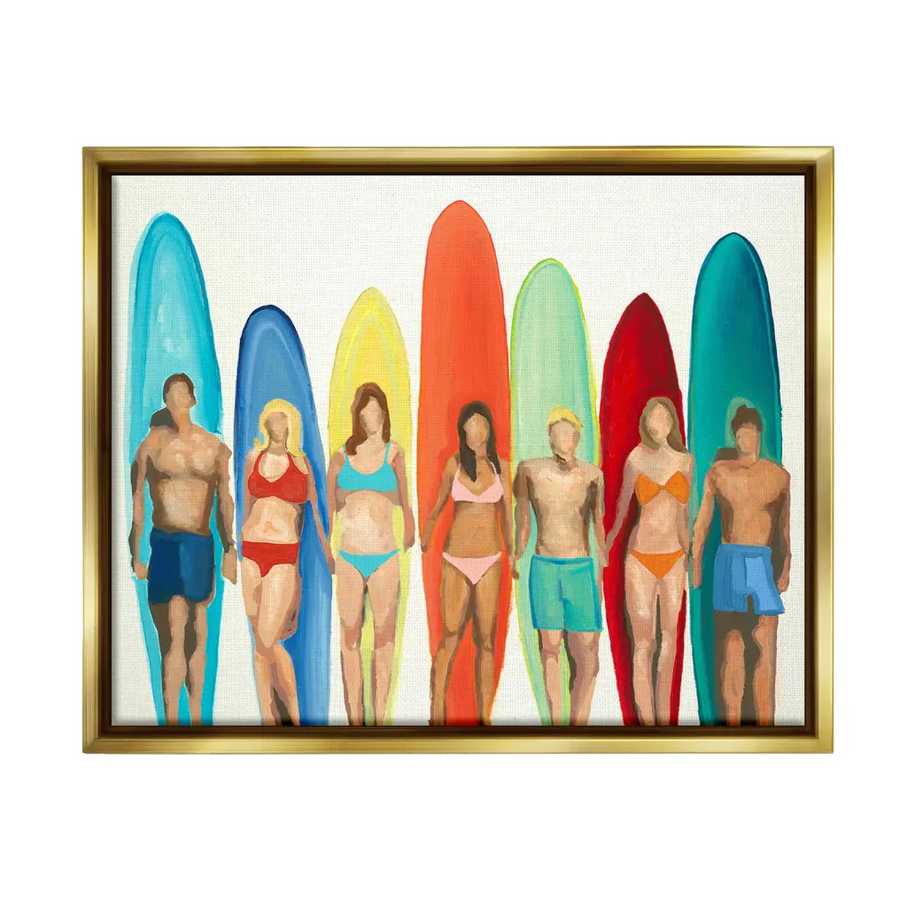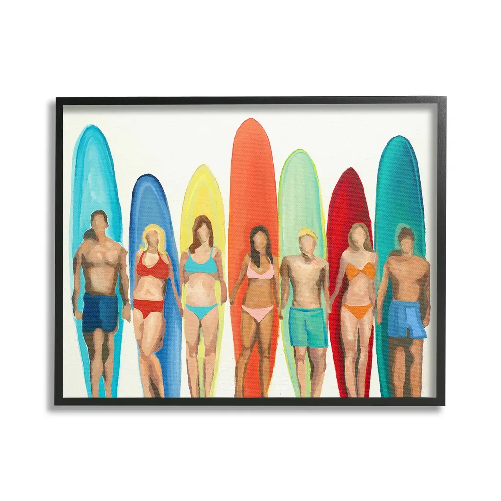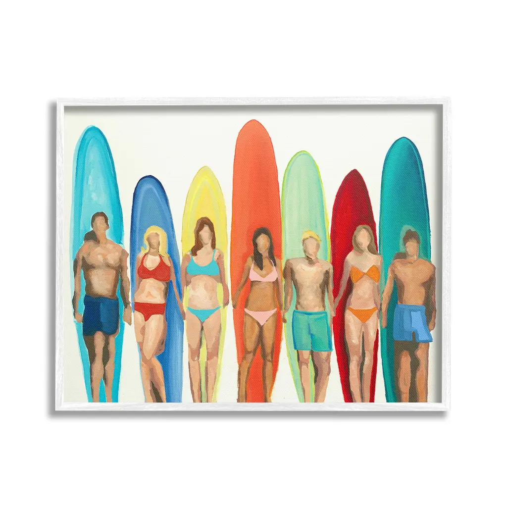 Add dimension to any room with our textured Framed Giclee Artwork. Our framed artwork is securely mounted into a 1.5-inch thick wood grain frame and ready to hang. Frames are available in three alluring styles: black, gray farmhouse and white. In addition, you should check out our oversized options if you want a statement piece. Stupell Wall Art is made in the USA.Features: Dimensions: 14 x 1.5 x 11 FramedFramed Giclee Products are available in the sizes 14"x11", 20"x16" or 30"x24". All Framed Giclee Products have a 1.5" Depth. Wall Art is Ready to Hang with Hardware Free Hanging. No installation required. For Easy Set Up Lean or Layer Artwork on Shelf or Against Wall.Our giclée prints are carefully mounted on a durable MDF backing, and then perfectly finished in a 1.5 inch thick woodgrain frame. Mounted frame colors include black, gray farmhouse and white. Made In USA.Artwork Relates To: Sport, Surfing, Person, People, Woman, Man, Swimwear, Beach, Ocean, Sea, Shore, SummerDesign by Randy Hibberd