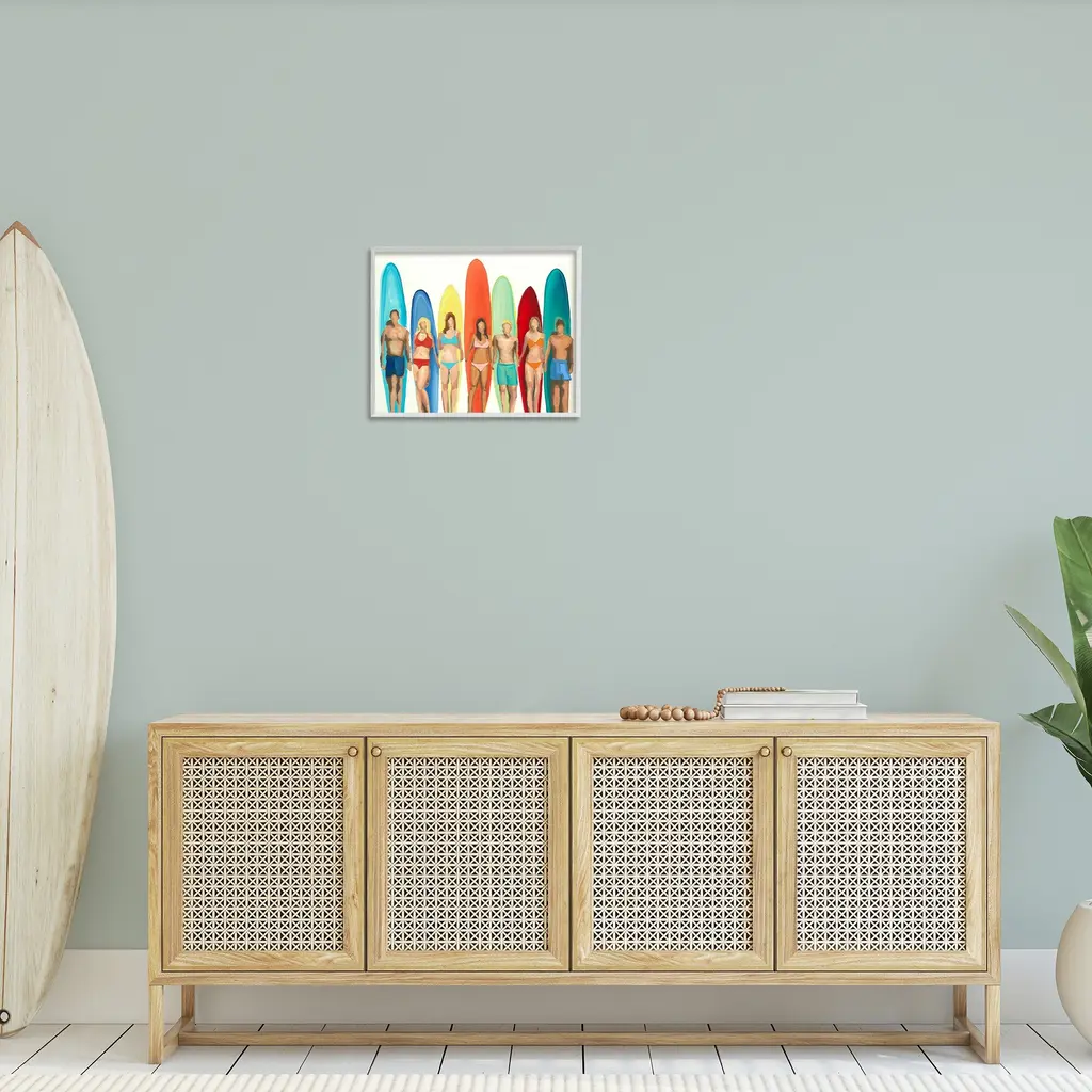 Add dimension to any room with our textured Framed Giclee Artwork. Our framed artwork is securely mounted into a 1.5-inch thick wood grain frame and ready to hang. Frames are available in three alluring styles: black, gray farmhouse and white. In addition, you should check out our oversized options if you want a statement piece. Stupell Wall Art is made in the USA.Features: Dimensions: 14 x 1.5 x 11 FramedFramed Giclee Products are available in the sizes 14"x11", 20"x16" or 30"x24". All Framed Giclee Products have a 1.5" Depth. Wall Art is Ready to Hang with Hardware Free Hanging. No installation required. For Easy Set Up Lean or Layer Artwork on Shelf or Against Wall.Our giclée prints are carefully mounted on a durable MDF backing, and then perfectly finished in a 1.5 inch thick woodgrain frame. Mounted frame colors include black, gray farmhouse and white. Made In USA.Artwork Relates To: Sport, Surfing, Person, People, Woman, Man, Swimwear, Beach, Ocean, Sea, Shore, SummerDesign by Randy Hibberd