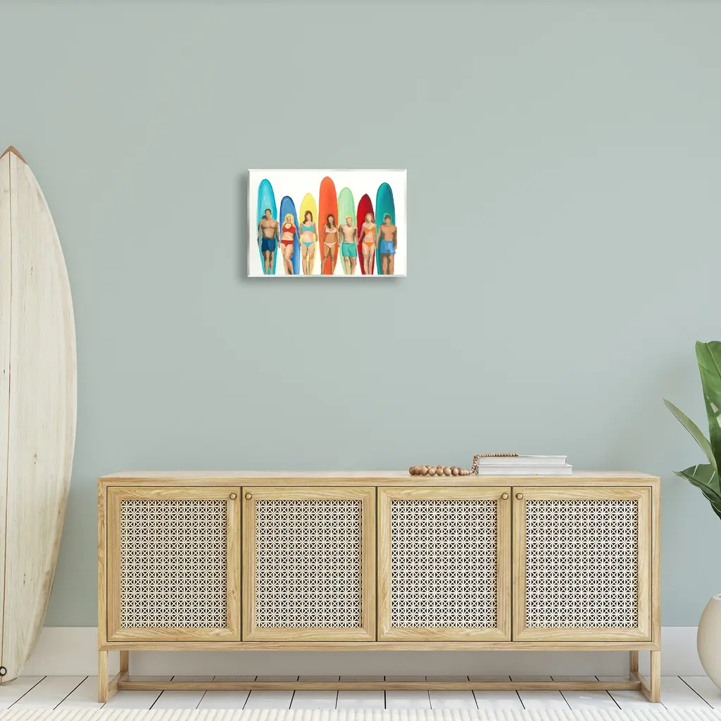Our wall plaques start as high-quality lithograph prints mounted on durable 0.5-inch thick MDF wood. Each piece is hand finished and comes with a fresh layer of white foil on the sides to give it a crisp, clean look. Plaques arrive ready to hang without installation and come with removable plastic corners to keep them from damage in transit. Stupell Wall Art is made in the USA.Features: Dimensions: 15 x 0.5 x 10 InchesWall Plaque Product Sizes Include 15"x10" and 19"x13". All wall plaque products have a 0.5" Depth. Wall Art is Ready to Hang with Hardware Free Hanging. No installation required. For Easy Set Up Lean or Layer Artwork on Shelf or Against Wall.All of our wall plaques start off as high quality lithograph prints that are then mounted on durable 0.5 inch thick MDF wood. Each piece is hand finished and comes with a fresh layer of foil on the sides to give it a crisp clean look. Made In USA.Artwork Relates To: Sport, Surfing, Person, People, Woman, Man, Swimwear, Beach, Ocean, Sea, Shore, SummerDesign by Randy Hibberd