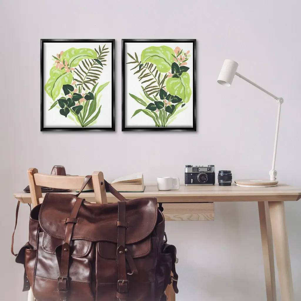 Elevate your home or office to the next level with Stupell Framed Floating Canvas Wall Art. Our premium hand-stretched canvas is mounted securely into a sturdy lightweight frame. The museum-style gap between the wrapped canvas and the box frame gives the illusion of floating artwork. Stupell Wall Art is made in the USA.Features: Dimensions: 2 Piece Set, Each Frame is 17 x 1.7 x 21Two Piece Floater Framed Canvas are available as 17x21 or 25x31 Panels. All Floater Frame Products have a 1.7" Depth.Wall Art is Ready to Hang with Hardware Free Hanging. No Installation required. For Easy Set Up Lean or Layer Artwork on Shelf or Against Wall. Artwork is Permently Fixed into the Frame.Our elevated 1.7" Thick Floating Frame is the perfect complement to our canvas style Wall Art. We use only the highest quality inks in house with industry leading printing solutions. Canvas is hand stretched over a durable wood foundation and then mounted securly into a Modern Box Frame. Made in the USA.Artwork Relates To: Leaf, Plant, Herbs, Floral, Pattern, Vegetation, Flower, Nature, Botanical, Tropical, Abstract, ModernDesign by June Erica Vess