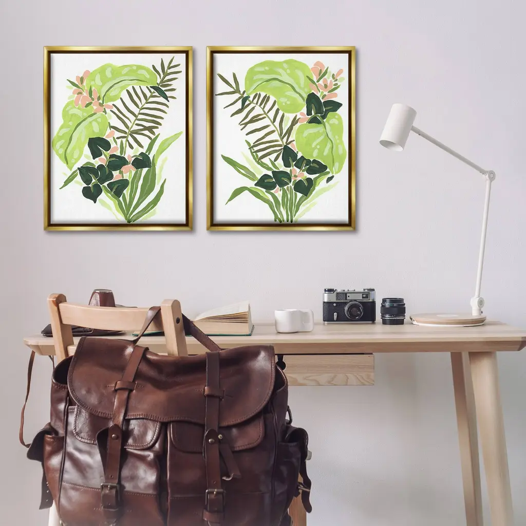 Elevate your home or office to the next level with Stupell Framed Floating Canvas Wall Art. Our premium hand-stretched canvas is mounted securely into a sturdy lightweight frame. The museum-style gap between the wrapped canvas and the box frame gives the illusion of floating artwork. Stupell Wall Art is made in the USA.Features: Dimensions: 2 Piece Set, Each Frame is 17 x 1.7 x 21Two Piece Floater Framed Canvas are available as 17x21 or 25x31 Panels. All Floater Frame Products have a 1.7" Depth.Wall Art is Ready to Hang with Hardware Free Hanging. No Installation required. For Easy Set Up Lean or Layer Artwork on Shelf or Against Wall. Artwork is Permently Fixed into the Frame.Our elevated 1.7" Thick Floating Frame is the perfect complement to our canvas style Wall Art. We use only the highest quality inks in house with industry leading printing solutions. Canvas is hand stretched over a durable wood foundation and then mounted securly into a Modern Box Frame. Made in the USA.Artwork Relates To: Leaf, Plant, Herbs, Floral, Pattern, Vegetation, Flower, Nature, Botanical, Tropical, Abstract, ModernDesign by June Erica Vess