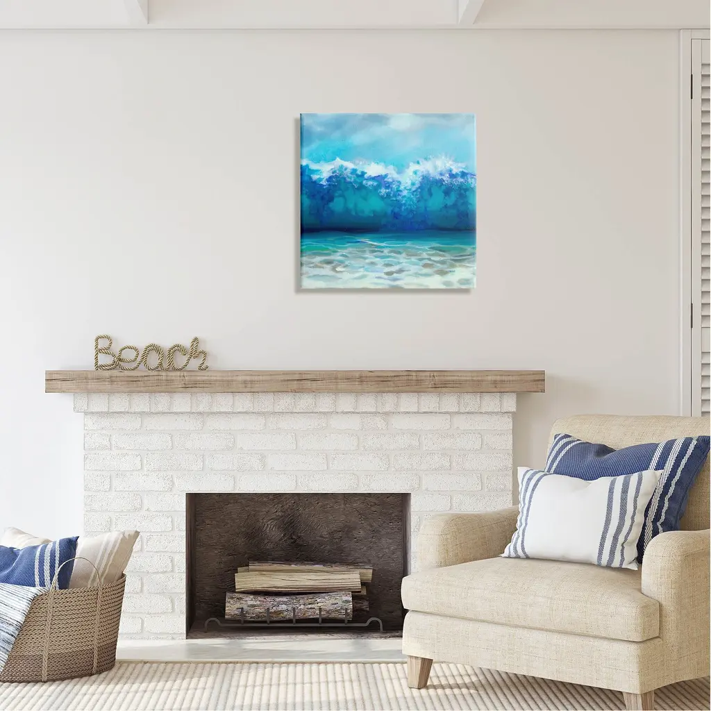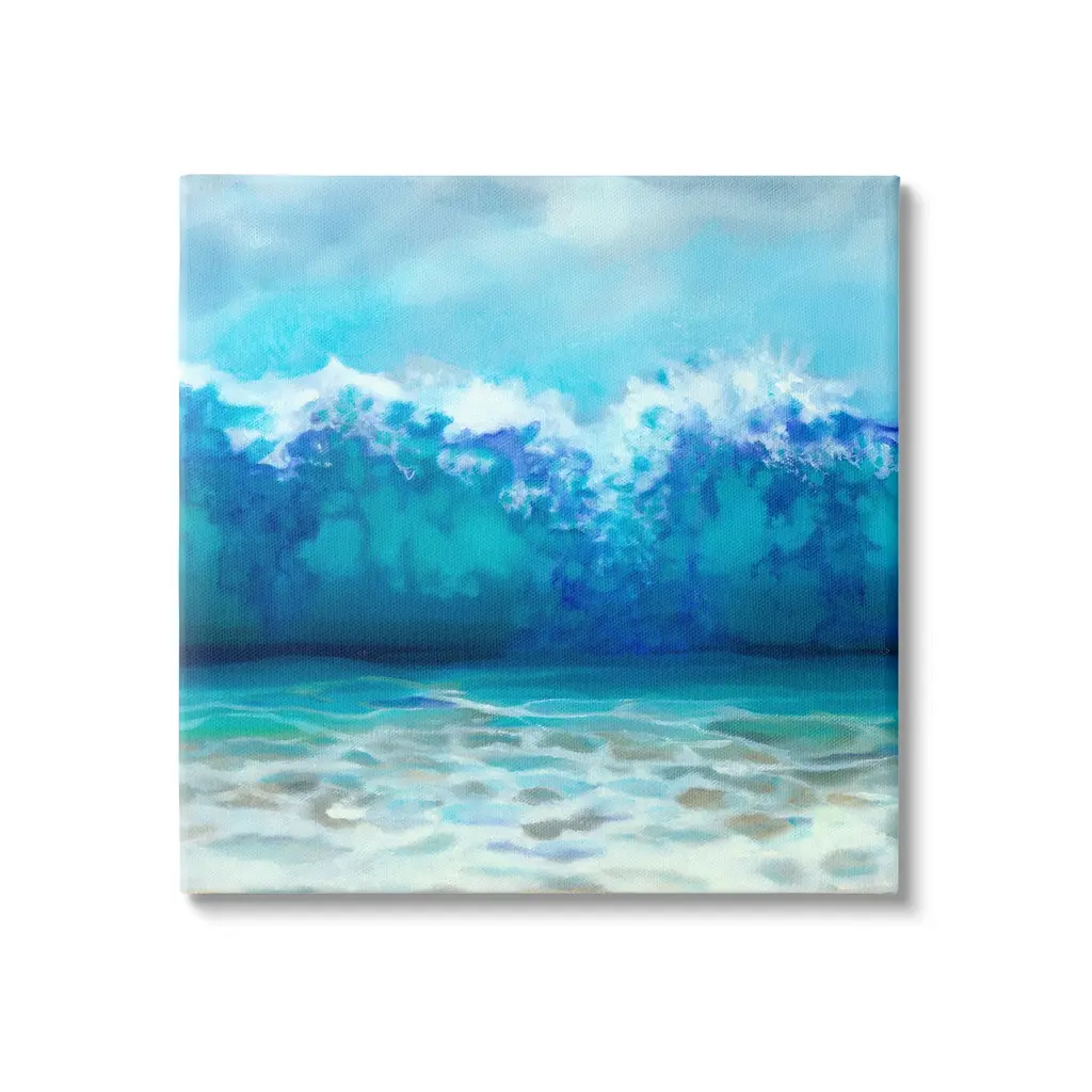 We create our stretched canvas to the highest standards. Using only the highest quality inks and canvas on Mimaki printers, we hand-cut and stretch each piece over a 1.5-inch thick wooden frame for hanging. As a result, the art comes ready to hang on the sturdy ledge with no installation required. Stupell Wall Art is made in the USA.Features: Dimensions: 17 x 1.5 x 17 InchesStretched Canvas Sizes Include Standard: 17 x 1.5 x 17 Large: 24 x 1.5 x 24 X-Large: 30 x 1.5 x 30 Oversized: 36 x 1.5 x 36Wall Art is Ready to Hang - No Installation or Hardware Needed. For Easy Set Up Lean or Layer Artwork on Shelf or Against Wall.Our stretched canvas is created with the highest standards. We use only the highest quality inks and canvas on our in house Mimaki printers, and then hand cut and stretch each piece over a 1.5 inch thick wooden frame for hanging. Made In USA.Artwork Relates To: Sea, Water, Sea Waves, Tsunami, Painting, Abstract, Coast, ShoreDesign by Louise Montillio