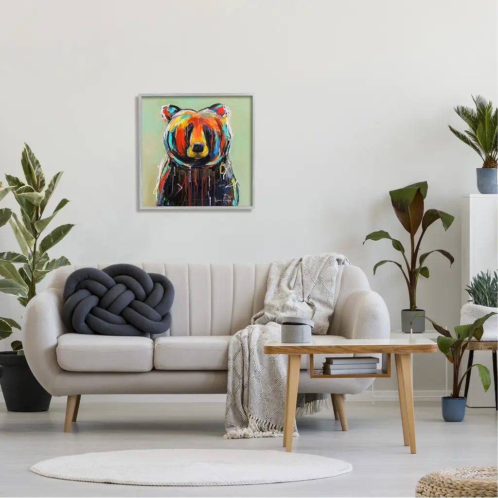 Our Framed Giclee Wall Art adds a touch of class to any space in your home or office. Frames are available in three alluring styles: black, gray farmhouse and white. Our textured artwork will add more depth and dimension to any space. Each piece is mounted with a 1.5 inch thick wood grain frame that is ready to hang! Looking for a statement piece? We have oversized artwork available. Room Type: Living Room, Den, Hallway, Office, Entryway, Study, Dining Room or Bedroom, Guest Room, Studio, Dorm or BoudoirFeatures: Dimensions: 12 x 1.5 x 12 FramedFramed Giclee Sizes Include Standard: 12 x 1.5 x 12 Large: 17 x 1.5 x 17 Oversized: 24 x 1.5 x 24Wall Art is Ready to Hang - No Installation or Hardware Needed. For Easy Set Up Lean or Layer Artwork on Shelf or Against Wall.Our giclée prints are carefully mounted on a durable MDF backing, and then perfectly finished in a 1.5 inch thick woodgrain frame. Mounted frame colors include black, gray farmhouse and white. Made In USA.Artwork Relates To: Painting, Modern, Animal, Mammal, Wildlife, Bear, Brown Bear, AbstractDesign by Karrie Evenson