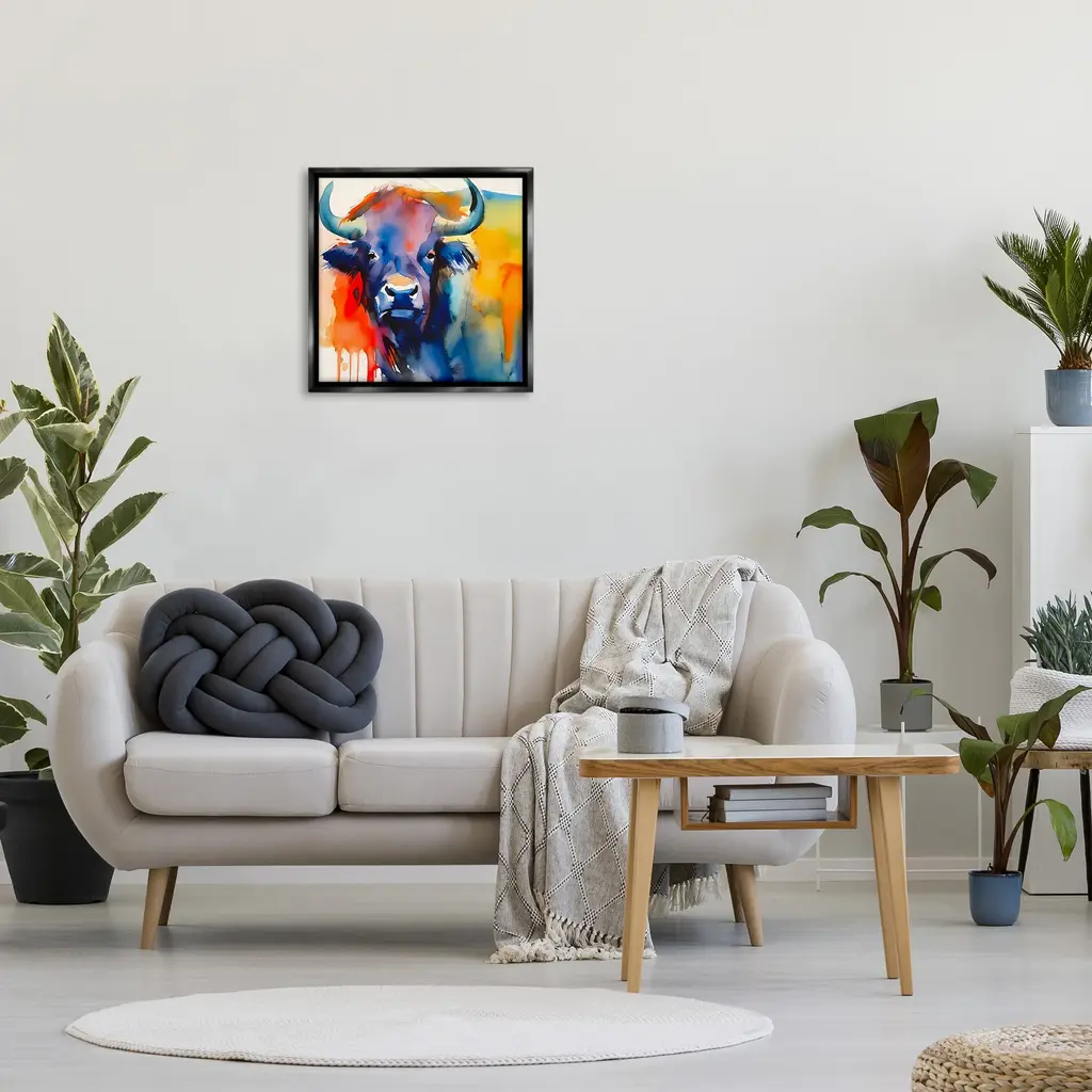 Elevate your home or office to the next level with Stupell Framed Floating Canvas Wall Art. Our premium hand-stretched canvas is mounted securely into a sturdy lightweight frame. The museum-style gap between the wrapped canvas and the box frame gives the illusion of floating artwork. Stupell Wall Art is made in the USA.Features: Dimensions: 18 x 1.7 x 18 Frame, 17 x 1.5 x 17 Canvas ArtFloating Frame Canvas Products are available in sizes 18"x18" and 25"x25". All Floating Frame Canvas Products have a 1.7" Depth.Wall Art is Ready to Hang with Hardware Free Hanging. No Installation required. For Easy Set Up Lean or Layer Artwork on Shelf or Against Wall. Artwork is Permently Fixed into the Frame.Our elevated 1.7" Thick Floating Frame is the perfect complement to our canvas style Wall Art. We use only the highest quality inks in house with industry leading printing solutions. Canvas is hand stretched over a durable wood foundation and then mounted securly into a Modern Box Frame. Made in the USA.Artwork Relates To: Animal, Mammal, Abstract, Modern, Paint Drip, Bison, CattleDesign by Walker Noble
