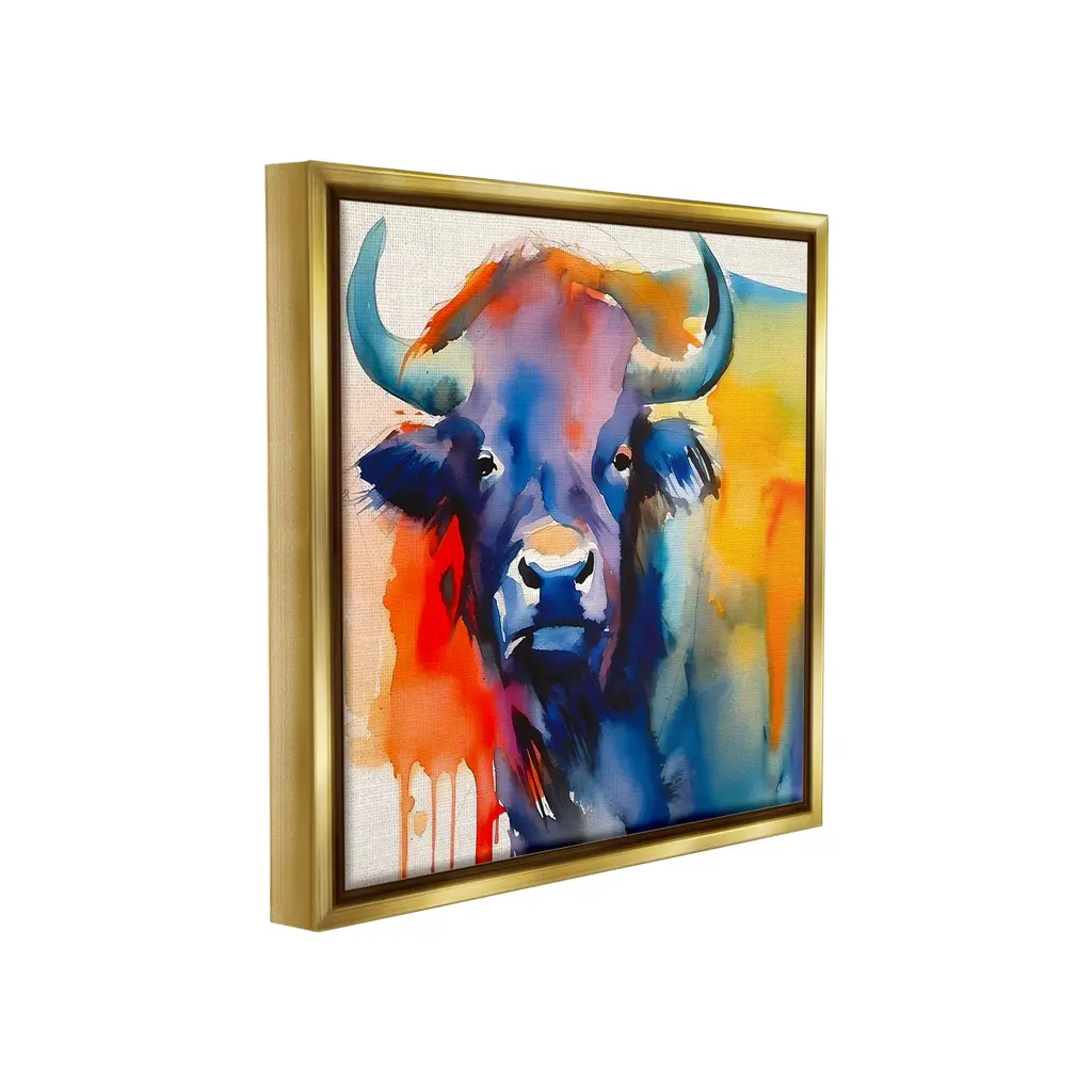 Elevate your home or office to the next level with Stupell Framed Floating Canvas Wall Art. Our premium hand-stretched canvas is mounted securely into a sturdy lightweight frame. The museum-style gap between the wrapped canvas and the box frame gives the illusion of floating artwork. Stupell Wall Art is made in the USA.Features: Dimensions: 18 x 1.7 x 18 Frame, 17 x 1.5 x 17 Canvas ArtFloating Frame Canvas Products are available in sizes 18"x18" and 25"x25". All Floating Frame Canvas Products have a 1.7" Depth.Wall Art is Ready to Hang with Hardware Free Hanging. No Installation required. For Easy Set Up Lean or Layer Artwork on Shelf or Against Wall. Artwork is Permently Fixed into the Frame.Our elevated 1.7" Thick Floating Frame is the perfect complement to our canvas style Wall Art. We use only the highest quality inks in house with industry leading printing solutions. Canvas is hand stretched over a durable wood foundation and then mounted securly into a Modern Box Frame. Made in the USA.Artwork Relates To: Animal, Mammal, Abstract, Modern, Paint Drip, Bison, CattleDesign by Walker Noble