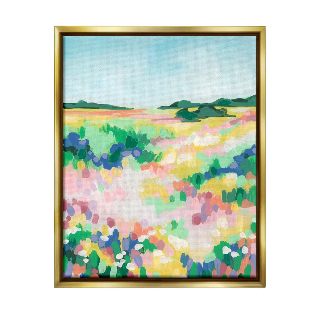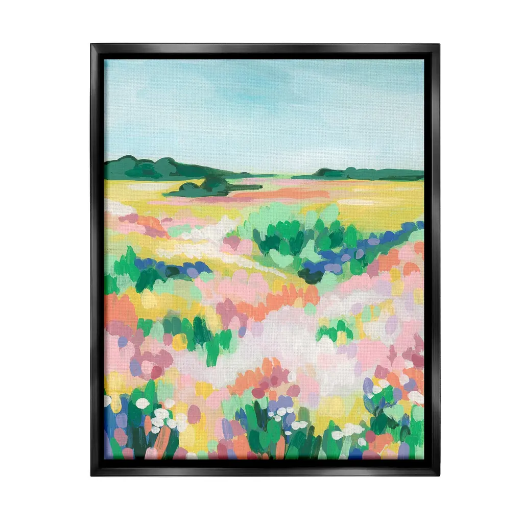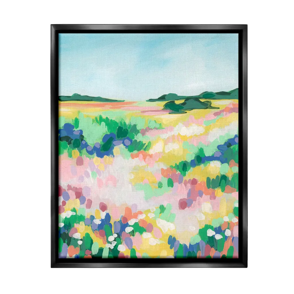 Elevate your home or office to the next level with Stupell Framed Floating Canvas Wall Art. Our premium hand-stretched canvas is mounted securely into a sturdy lightweight frame. The museum-style gap between the wrapped canvas and the box frame gives the illusion of floating artwork. Stupell Wall Art is made in the USA.Features: Dimensions: 17 x 1.7 x 21 Frame, 16 x 1.5 x 20 Canvas ArtFloating Frame Canvas Products are available in sizes 17"x21" and 25"x31". All Floating Frame Canvas Products have a 1.7" Depth.Wall Art is Ready to Hang with Hardware Free Hanging. No Installation required. For Easy Set Up Lean or Layer Artwork on Shelf or Against Wall. Artwork is Permently Fixed into the Frame.Our elevated 1.7" Thick Floating Frame is the perfect complement to our canvas style Wall Art. We use only the highest quality inks in house with industry leading printing solutions. Canvas is hand stretched over a durable wood foundation and then mounted securly into a Modern Box Frame. Made in the USA.Artwork Relates To: Painting, Flower, Plant, Field, Grassland, Nature, Countryside, Meadow, Rural, Grass, Landscape, Scenery, Abstract, ModernDesign by June Erica Vess