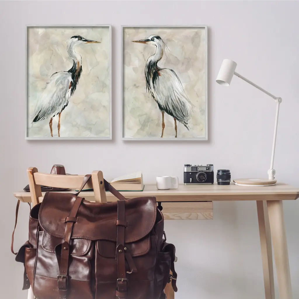 Stupell Abstract Watercolor Great Heron Birds Expressive Tan Feathers 2Pc Multi Piece Framed Wall Art Set - 24 X 30 - Grey